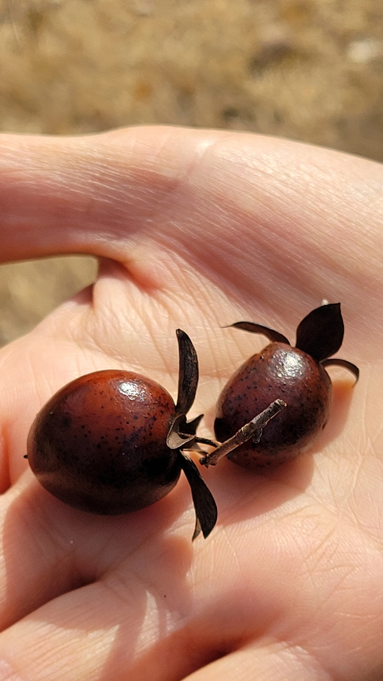 매화가지에는 꽃눈이 부풀었다. 한 달 정도만 지나면 향기로운 꽃을 피울 것이다. 신기한 나무 열매를 발견했다. 감처럼 생겼는데 딱딱한 껍질에 윤이 자르르 흐른다. 귀엽고 깜찍하다.