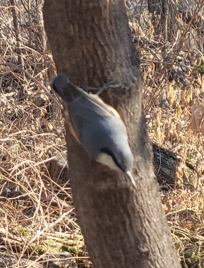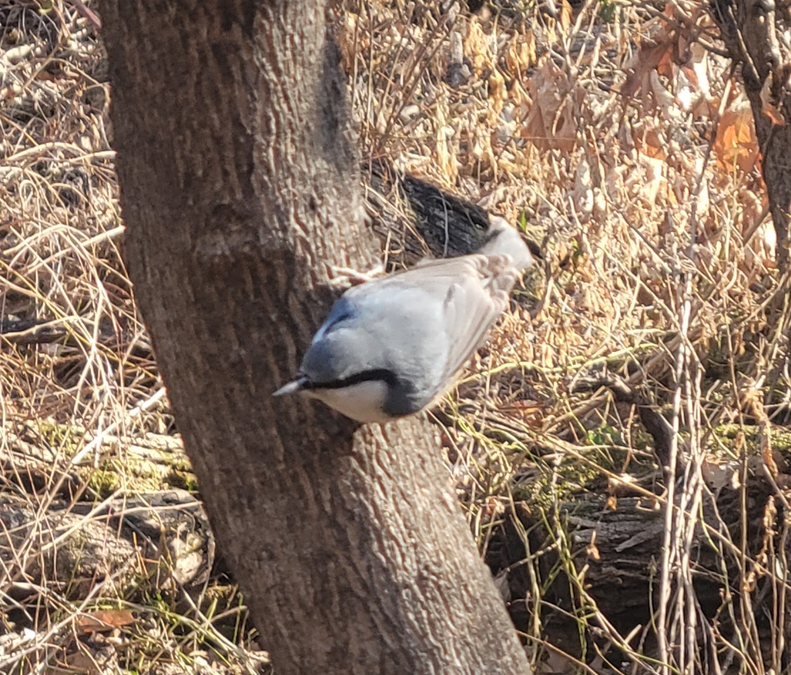 입이 더 벌어진다. 이름만 들었던 동고비도 나타났다. 낯선 자태에 홀딱 빠진다. 작고 오동통한 유선형으로 날렵하다. 청회색 날개에 배는 빛깔이 희다. 비교적 길고 뾰족한 부리를 지녔다. 가장 큰 특징은 선명하고 짙은 검은색 아이라인이다. 잘록한 꼬리깃을 지녔다. 몸 전체가 귀여움으로 무장했다. 상상 이상으로 귀엽다. 이 녀석이 풍기는 매력에 쏙 빠졌다. 안타깝게 가장 겁이 많다. 일정 거리를 둔 채 가까이 오지 않는다.