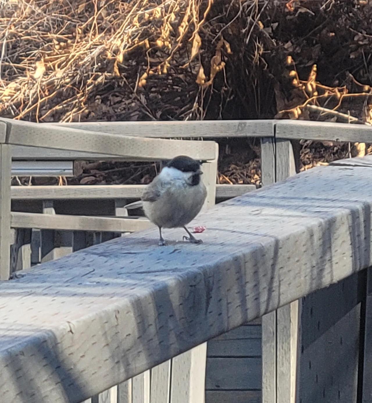내 손에 찾아와 모이를 물어갔다는 기쁨에 환호성이 터진다. 더 간절하게 손을 하늘로 들어 올린다. 박새는 겁이 많은 지 손에 앉질 못한다. 겁먹지 말고 어서 가까이 와서 잣을 물어 갔으면 하지만 내 마음뿐이다. 녀석은 주위만 어정거린다.