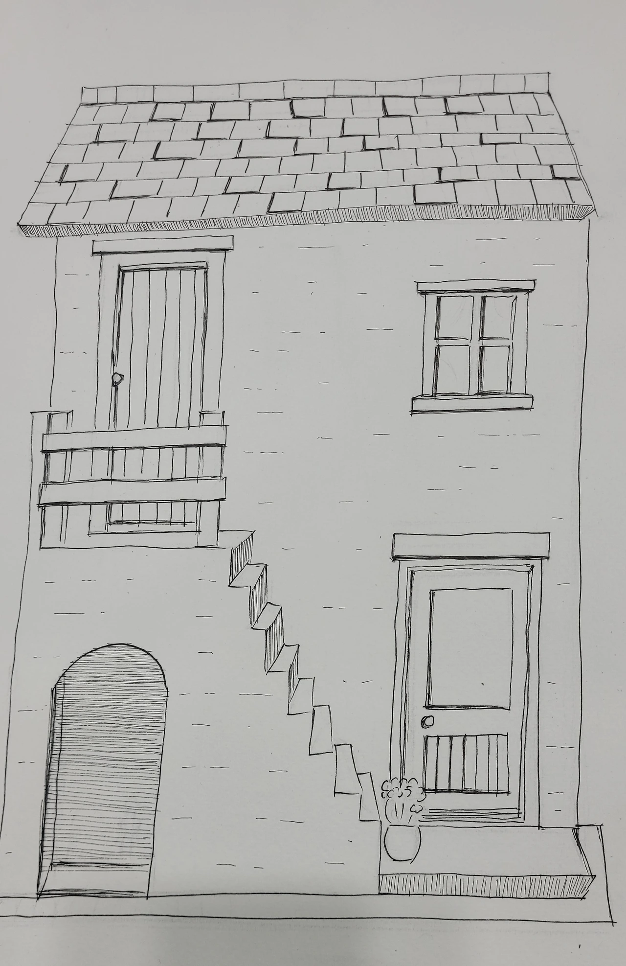 해칭 작업을 할 때도 투시도 개념을 올바로 가지고 있어야 틀리지 않고 바로 할 수 있다. 해칭을 넣어야 할 곳은 빼먹고 하지 말아야 할 곳은 손을 댈 수 있기 때문이다. 해칭 작업이 끝난 후 다시 보니 음영이 부각된다. 실제로 어두운 부분을 사선으로 반복해서 채우니 그림이 달라 보인다.