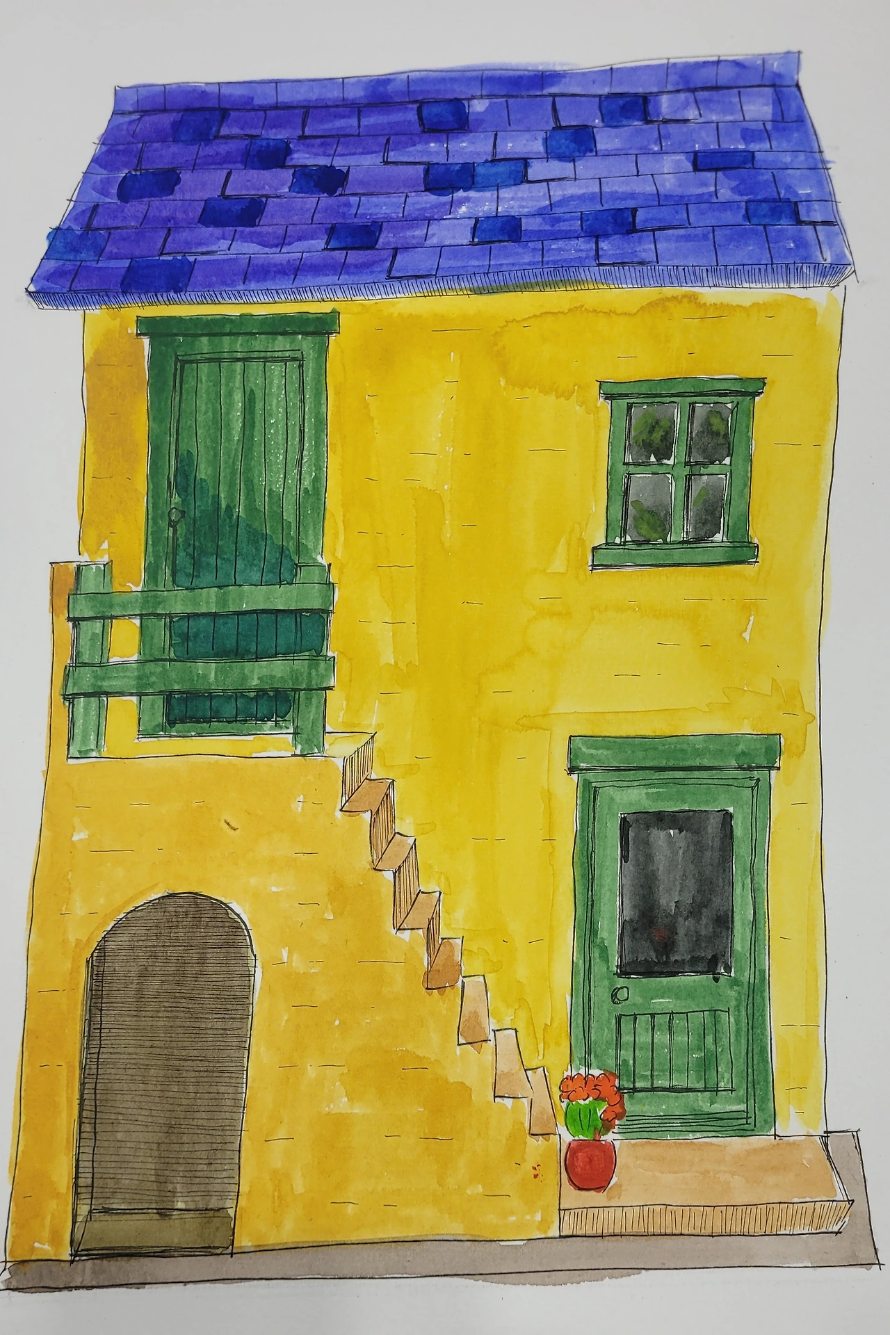 과감하게 물감을 택해 칠을 시작했다. 원본과 비슷한 느낌으로 채색하려고 했는데, 전혀 다르다. 다 칠하고 보니 엉성하기 짝이 없다. 마치 초등학생 그림 같다. 다른 사람이 한 것을 보니 나보다 훨씬 낫다. 그 이유는 채도를 비슷하게 해서 전체적으로 부드러운 분위기인데 반해 나는 너무 대조적인 원색을 썼다.