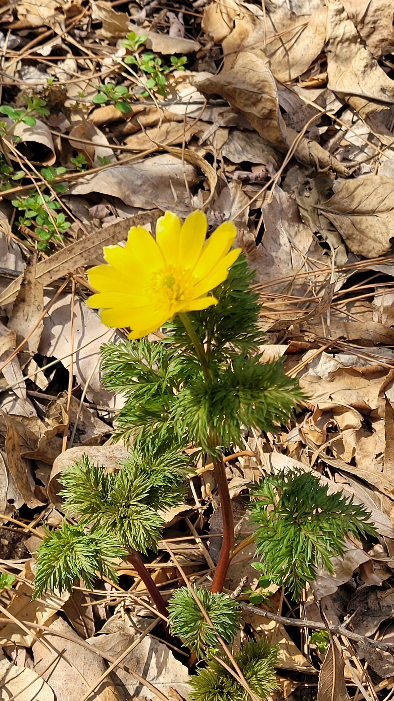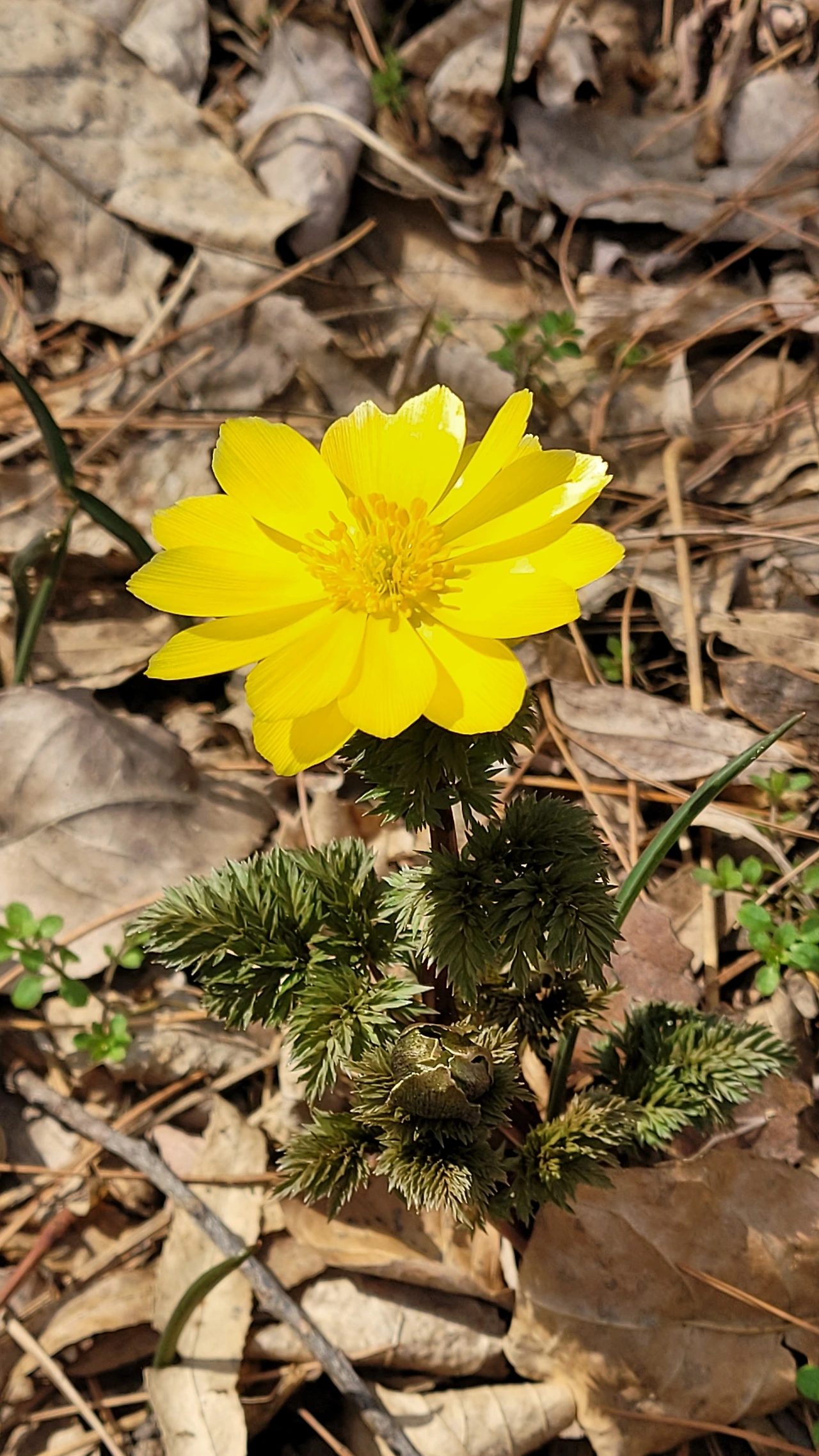 귀엽고 앙증맞은 노란 꽃이 피어났다. 기대하지 않아서 더 반갑다. 올해 들어 처음으로 제대로 핀 꽃을 만난 감동이 가슴을 적신다. 다정하게 여러 송이가 사이좋게 어울려 피는 것도 보기 좋은데, 한 송이가 함초롬이 피어있는 모습도 예쁘다. 선명한 노란 꽃빛이 완연한 봄빛이다. 햇살을 받아 금빛이 반짝이는 자태는 더 황홀하다. 전에는 이 꽃이 복수초인줄 알았는데, 이 아이들은 개복수초다. 복수초는 꽃이 땅에 가까이 피고, 개복수초는 긴 줄기 끝에 꽃이 핀다. 잎도 복수초는 가늘고 섬세한 반면 개복수초는 넓고 톱니모양이다. 대충 아는 것은 위험한 일이다. 하나를 알 때 올바르고 정확한 지식을 습득할 수 있도록 노력해야겠다.