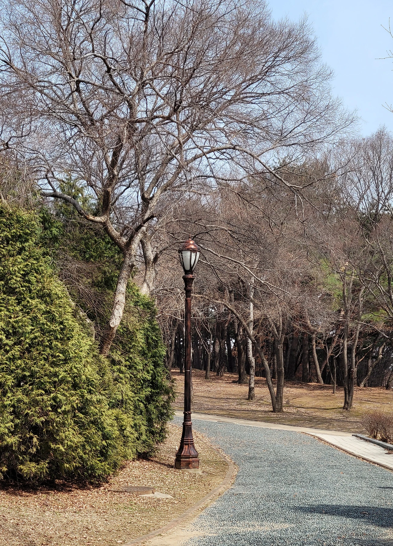 전철역을 내려 공원에 들어서면 가장 먼저 눈에 들어오는 것은 잘 빠진 소나무들의 멋진 자태다. 쭉 뻗은 키에 선명히 붉은 수피가 건강해 보이고 푸른 솔잎도 무성해서 생동감이 풍긴다, 우아한 소나무들의 존재로 인해 공원에 격조가 있어 보인다.