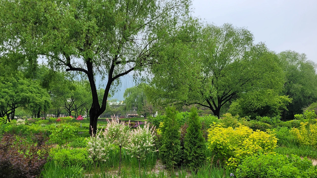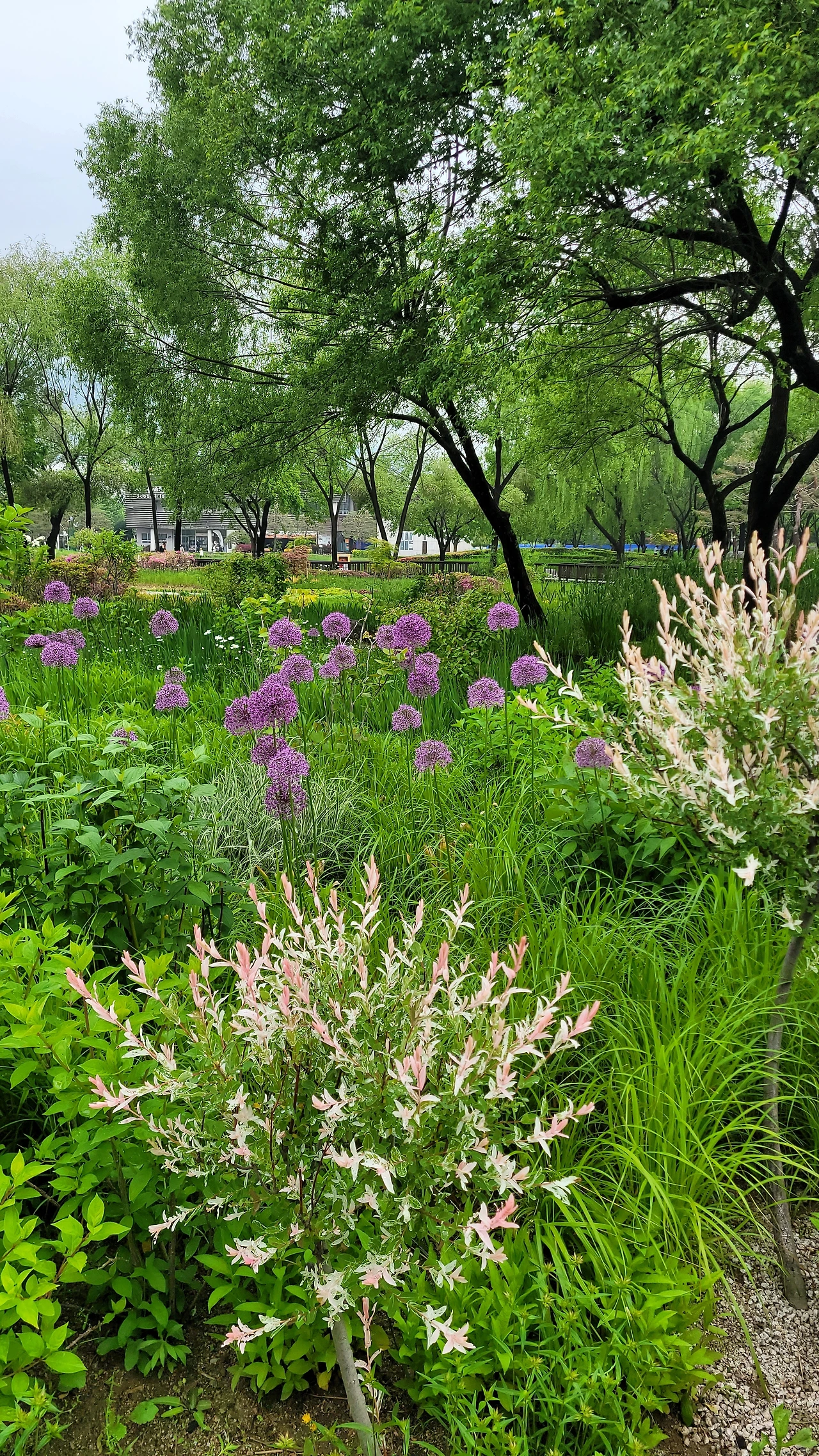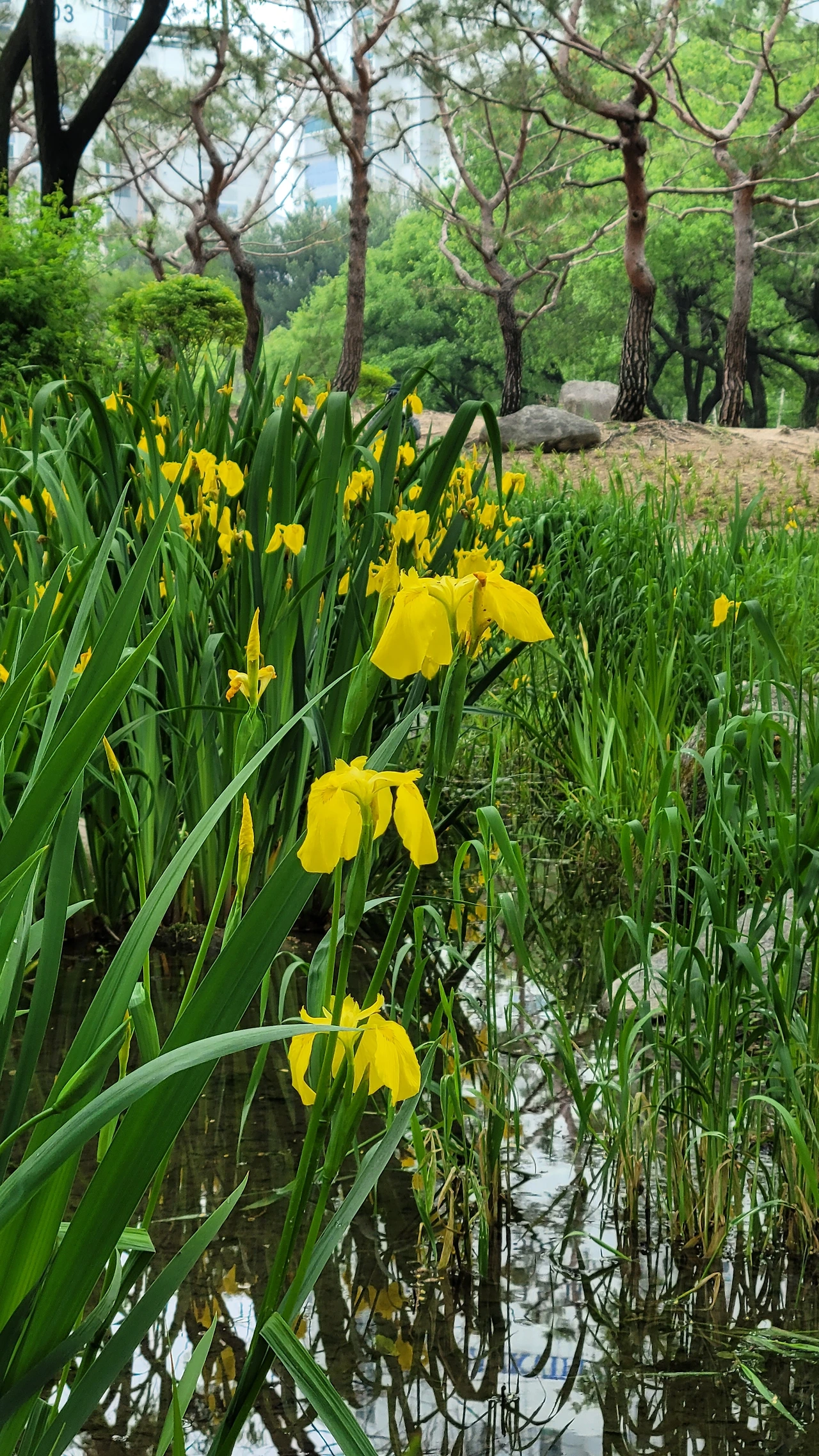 아름다운 천변길을 달려 창포원에 도착했다. 녹음이 짙어가고 다채로운 꽃들이 피어 아름다운 동산이다. 창포가 싱그러운 잎을 연못 가득히 채웠다. 단정하고 깔끔하고 유려한 잎만으로도 눈이 시원하다. 왜가리 한 마리가 여유롭게 먹이를 낚는 모습이 한가롭다. 알리움이 꿈처럼 피어나고 삼색버드나무가 꽃처럼 자라나 고운 풍경을 빚었다. 붓꽃들이 군데군데 피어 창포원이라는 이름을 떠올리게 하지만 예전만큼은 못한 것 같다. 그중 노랑꽃창포는 만개해서 아쉬움을 달래준다.