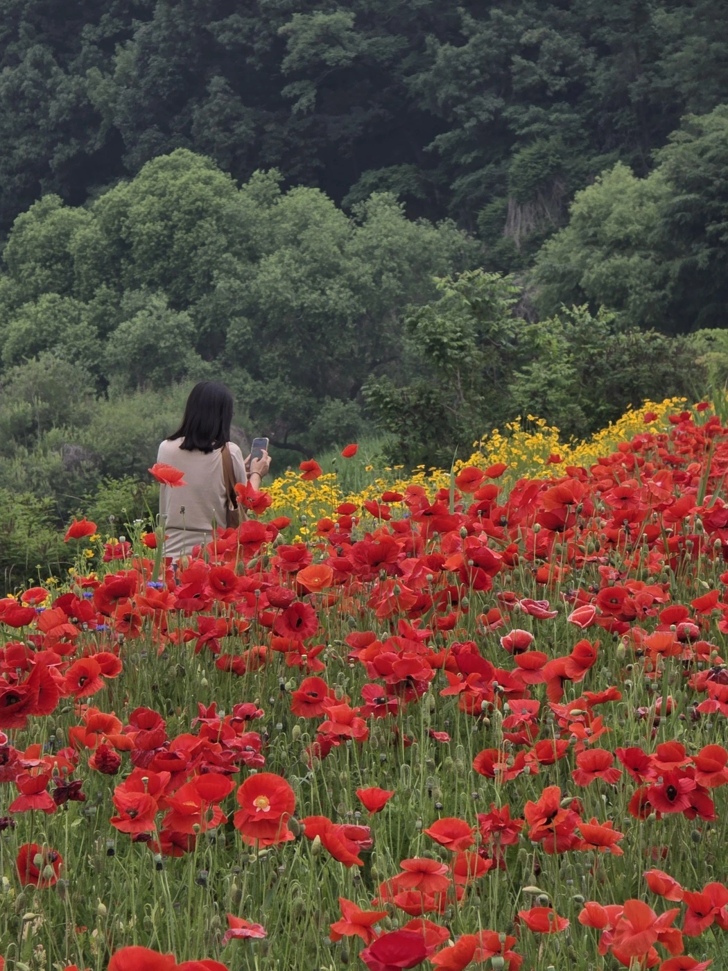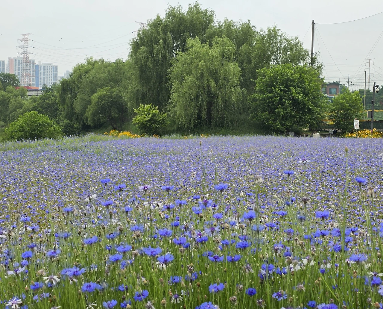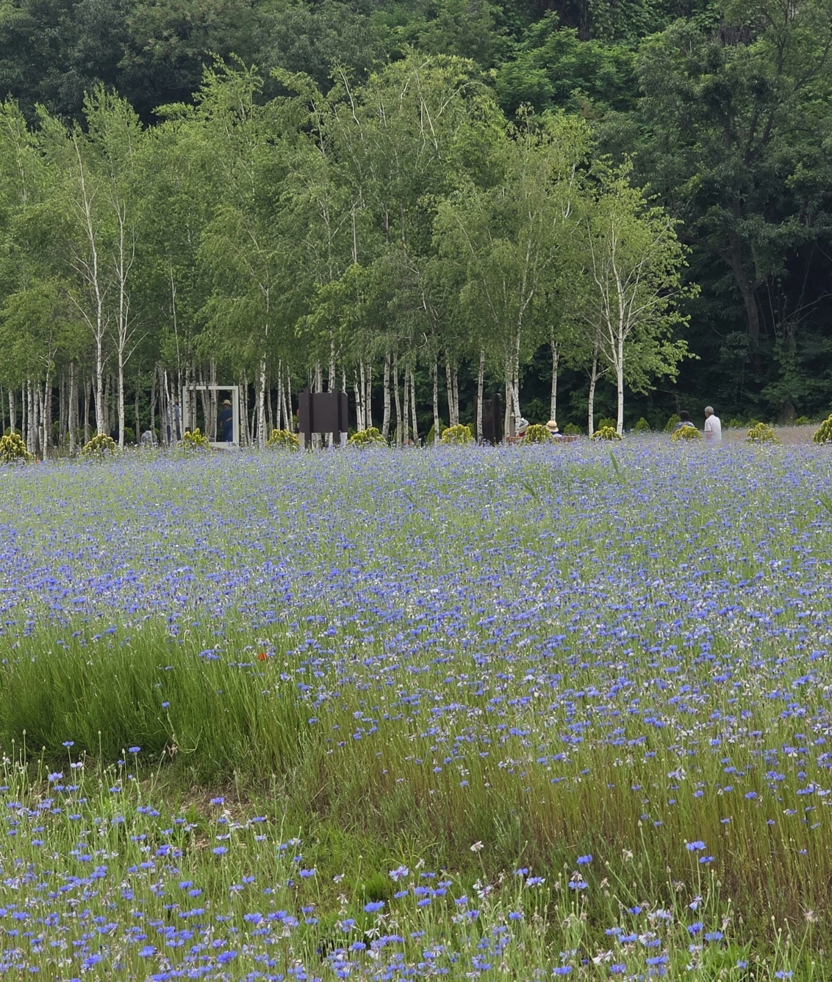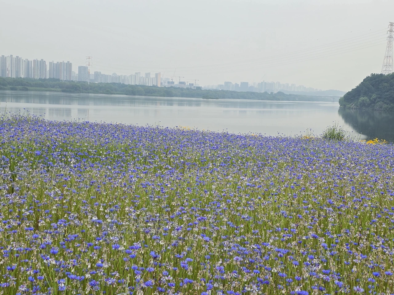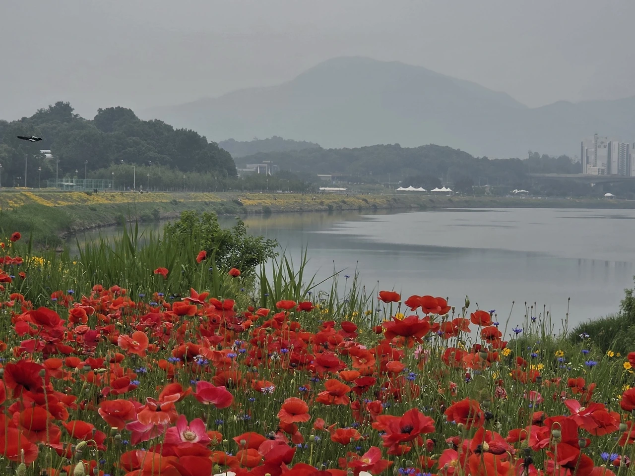강변에는 수많은 꽃들이 물결을 이루고 있었다. 마치 동화 속 같은 풍경이 펼쳐졌다. 기대하지 않은 선물을 받은 기쁨이 반짝인다. 언덕마다 금계국이 한창이었다. 서울을 벗어나 구리에 접어들자 풍경이 바뀌었다. 온통 꽃양귀비다. 강렬하고 요염한 붉은빛이 마치 불꽃같다. 이어서 수레국화의 부드러운 남빛 꽃길이 길게 이어진다. 파스텔톤의 은은한 빛깔이 매혹적이다. 우아한 자작나무 숲이 배경이 되어 한층 분위기 있는 정경이다. 자잘한 흰꽃송이가 한들거리는 안개꽃밭도 볼거리다. 여러 가지 꽃들이 섞여 다채로운 것도 아름답지만 한 가지 꽃송이가 무리를 지어 군락을 이루면 또 다른 특별한 멋과 아름다움이 묻어난다. 눈이 호강하는 시간이다.