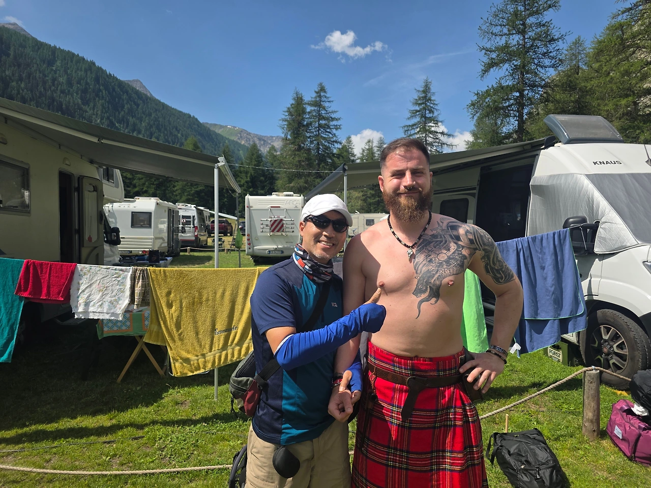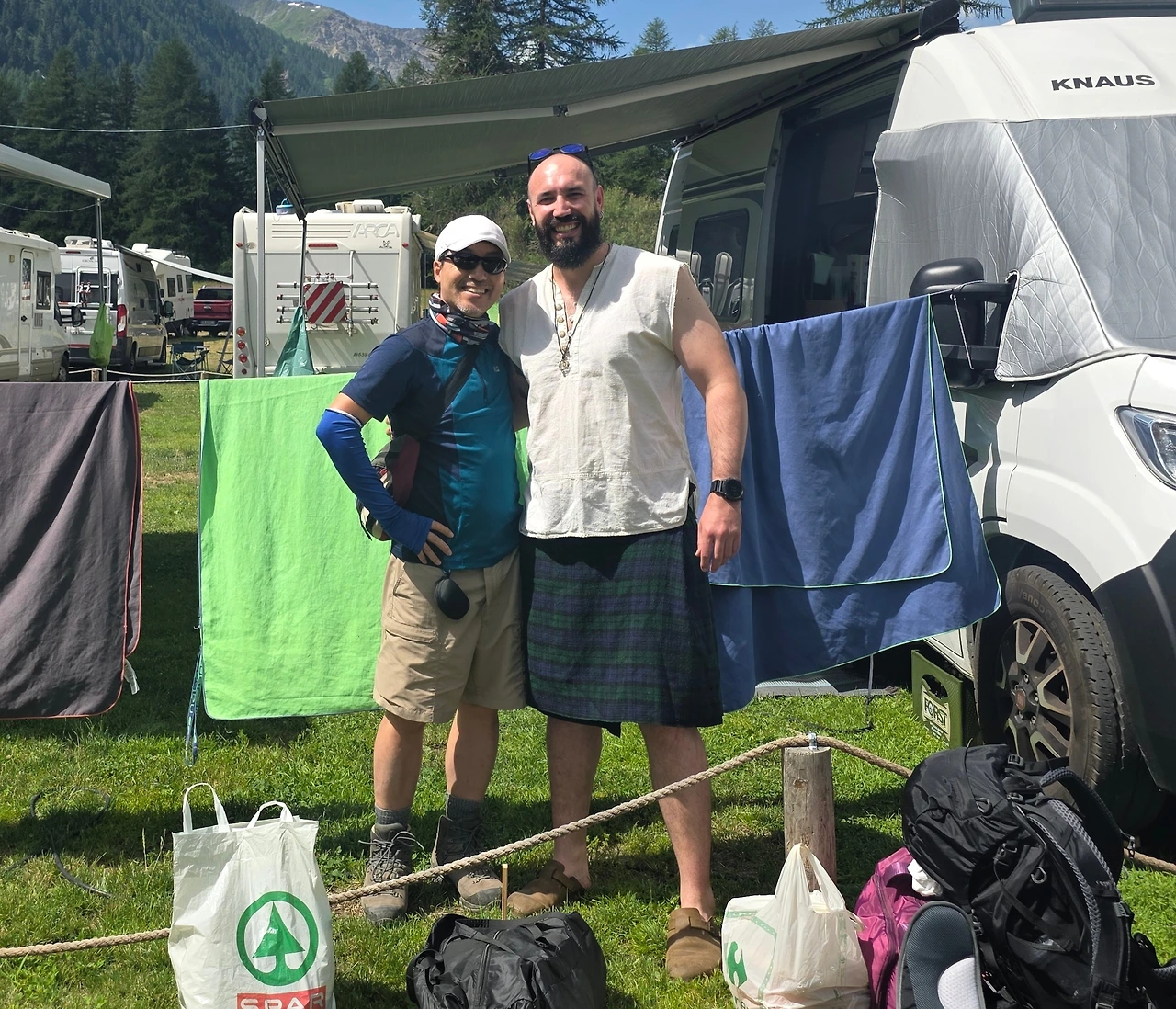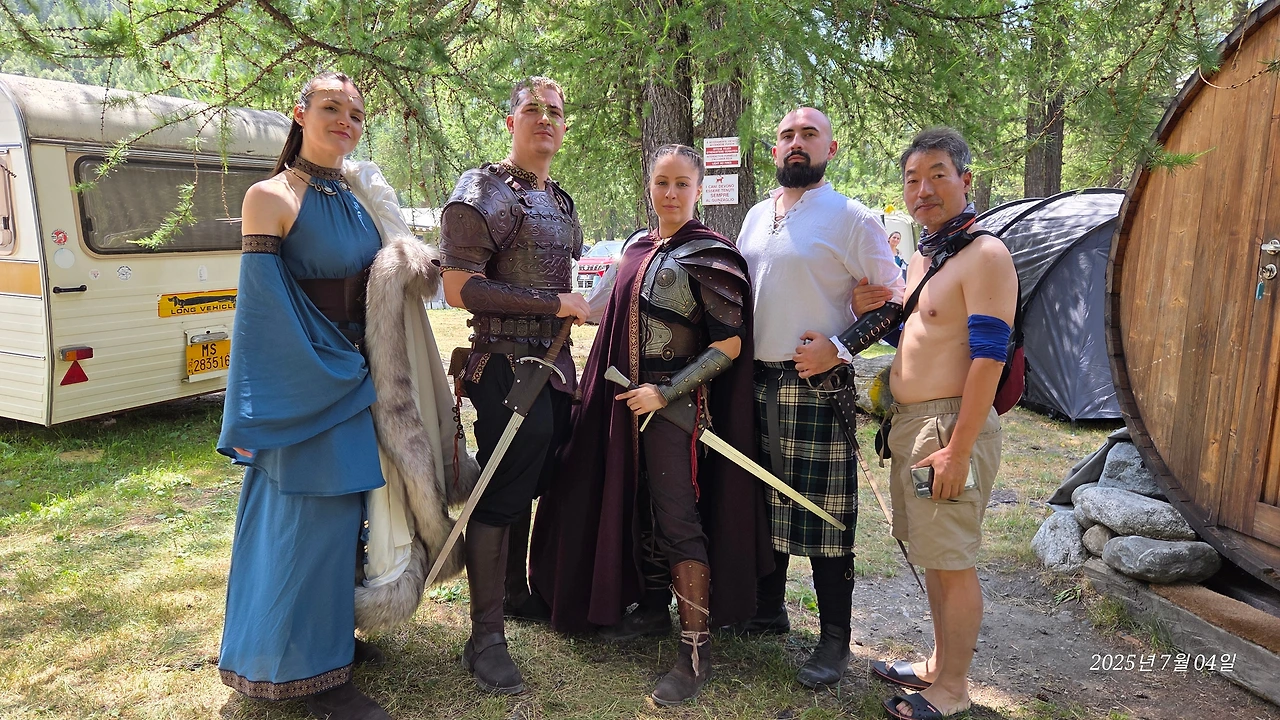 텐트 치는 곳을 배정받아 가니 튜닉을 입은 이웃을 만났다. 반가운 마음에 인사를 하고 기념사진도 찍었다. 스코들랜드 사람인 줄 알았는데 이탈리아인이었다. 이곳에 셀틱축제가 있다고 한다. 덕분에 다른 축제 참가자들과 함께 사진을 더 찍을 수 있었다. 외국인들과 교류도 외국여행의 또 다른 묘미다.