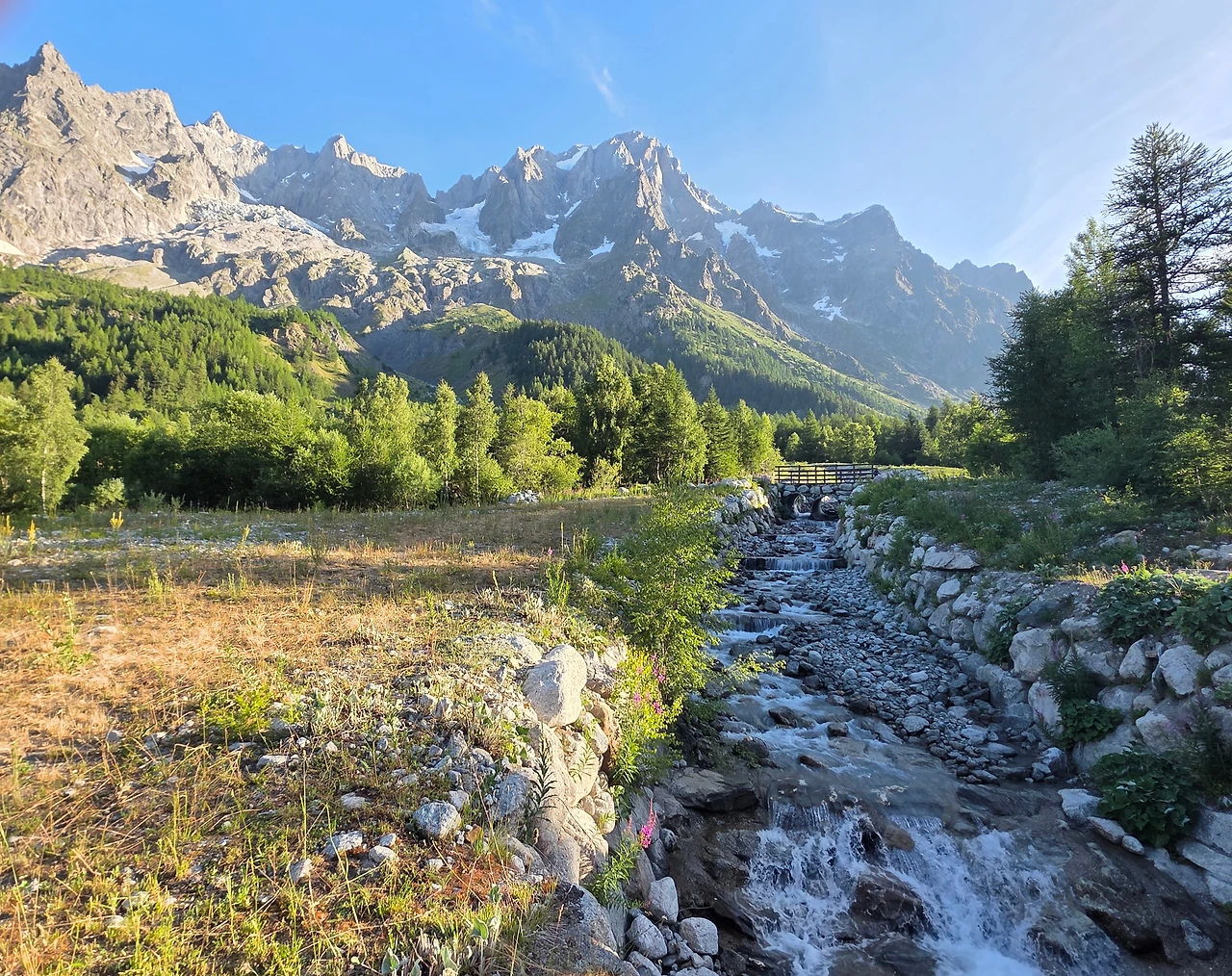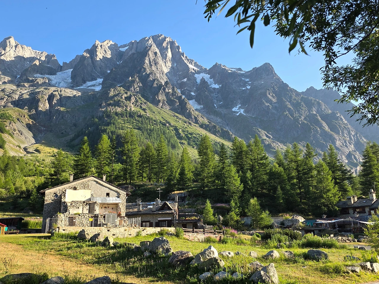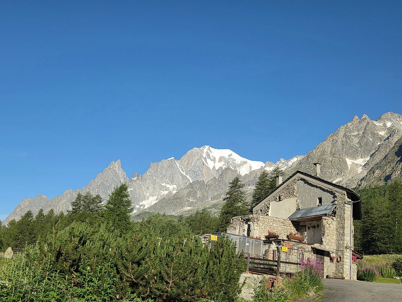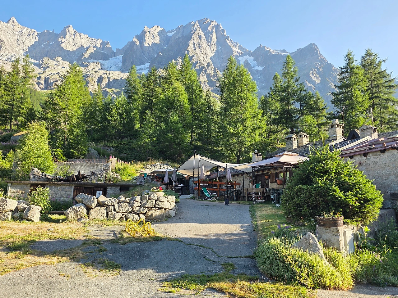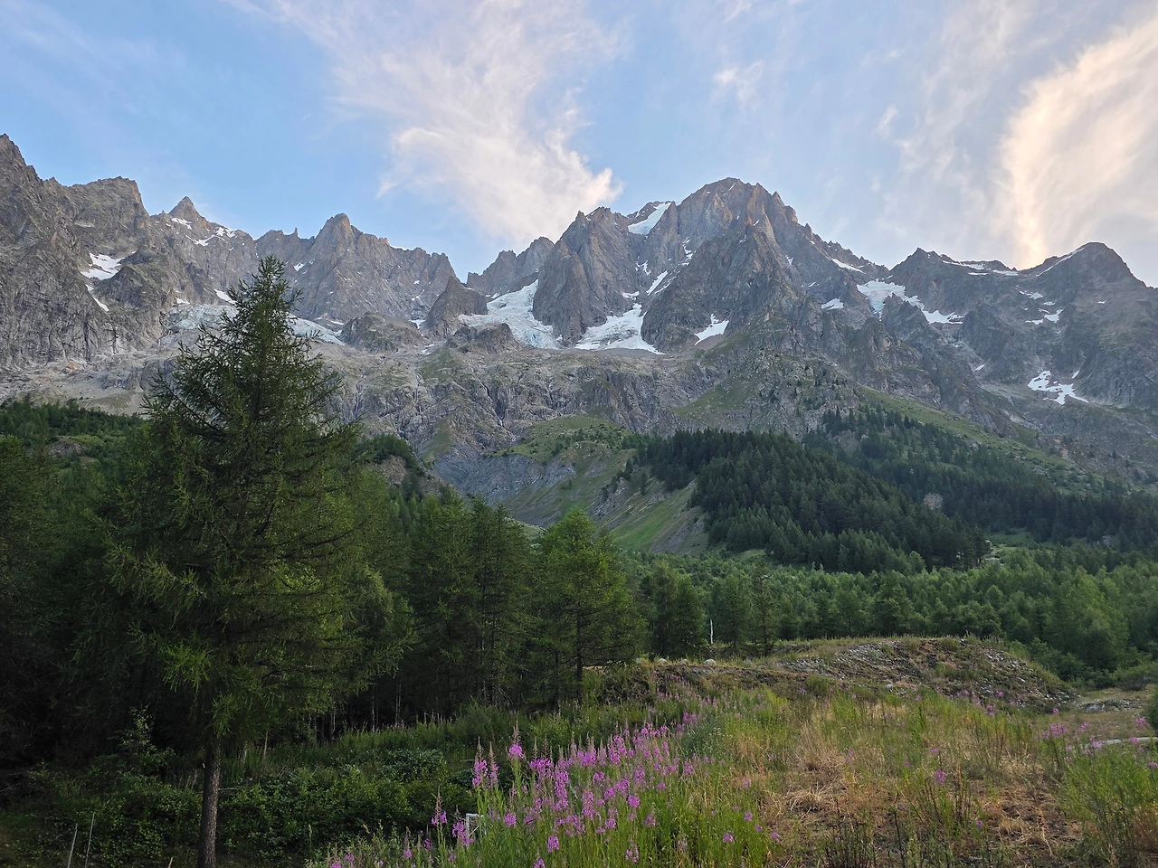 Grande Jorasess 야영장으로 이동을 했다. 이곳에서 2박을 할 예정이다. 이곳은 프랑스와 이태리 국경지방으로 이 봉우리의 높이는 무려 4,208미터에 이른다.