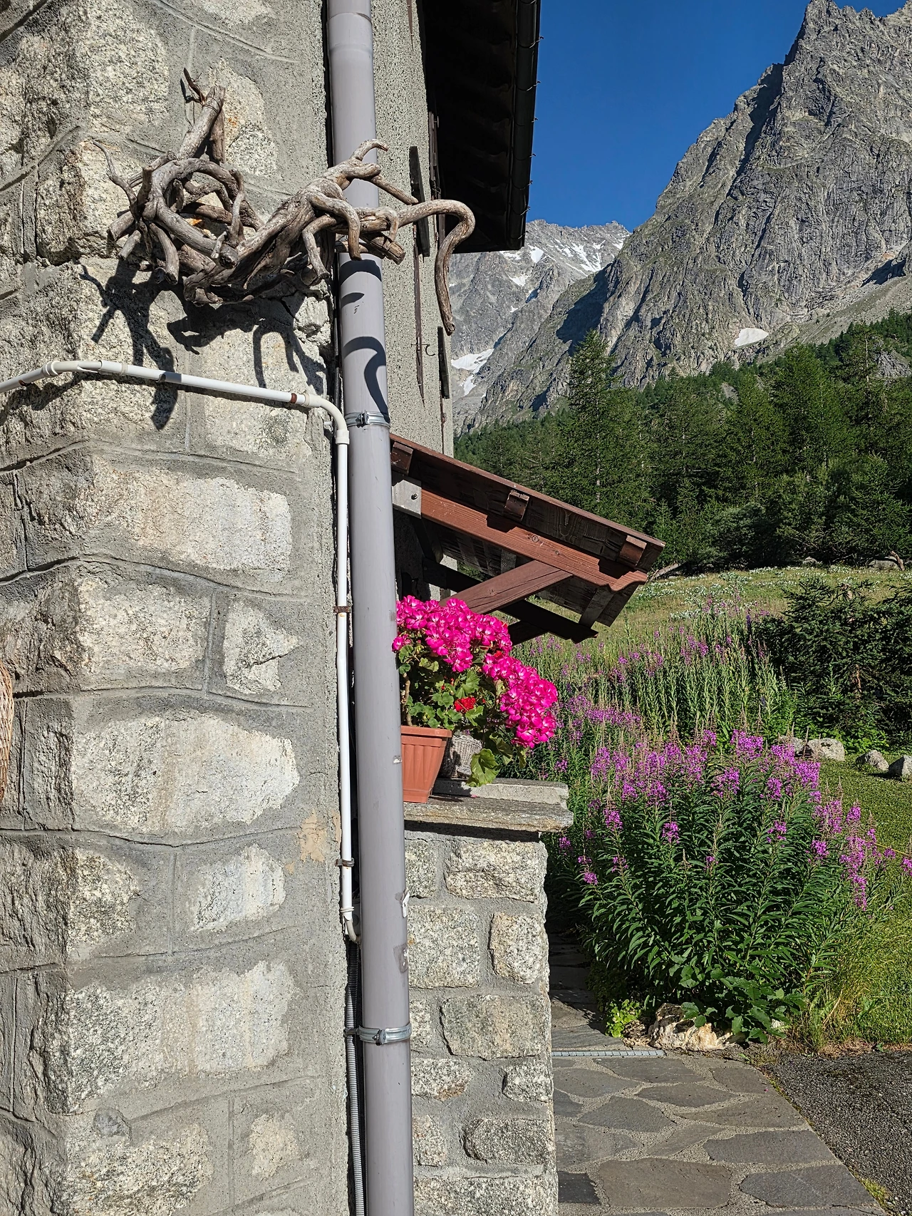 대자연과 어우러진 집도 자연스럽다. 이질적인 존재라도 동화가 되면 하나가 된다. 이곳의 가옥들은 알프스와 닮았다. 흔한 돌을 지붕 삼아 목재로 지어졌는데 단아하고 정겹다. 거기에 꽃을 사랑하여 운치를 더하니 보기에 좋을 수밖에 없다.
