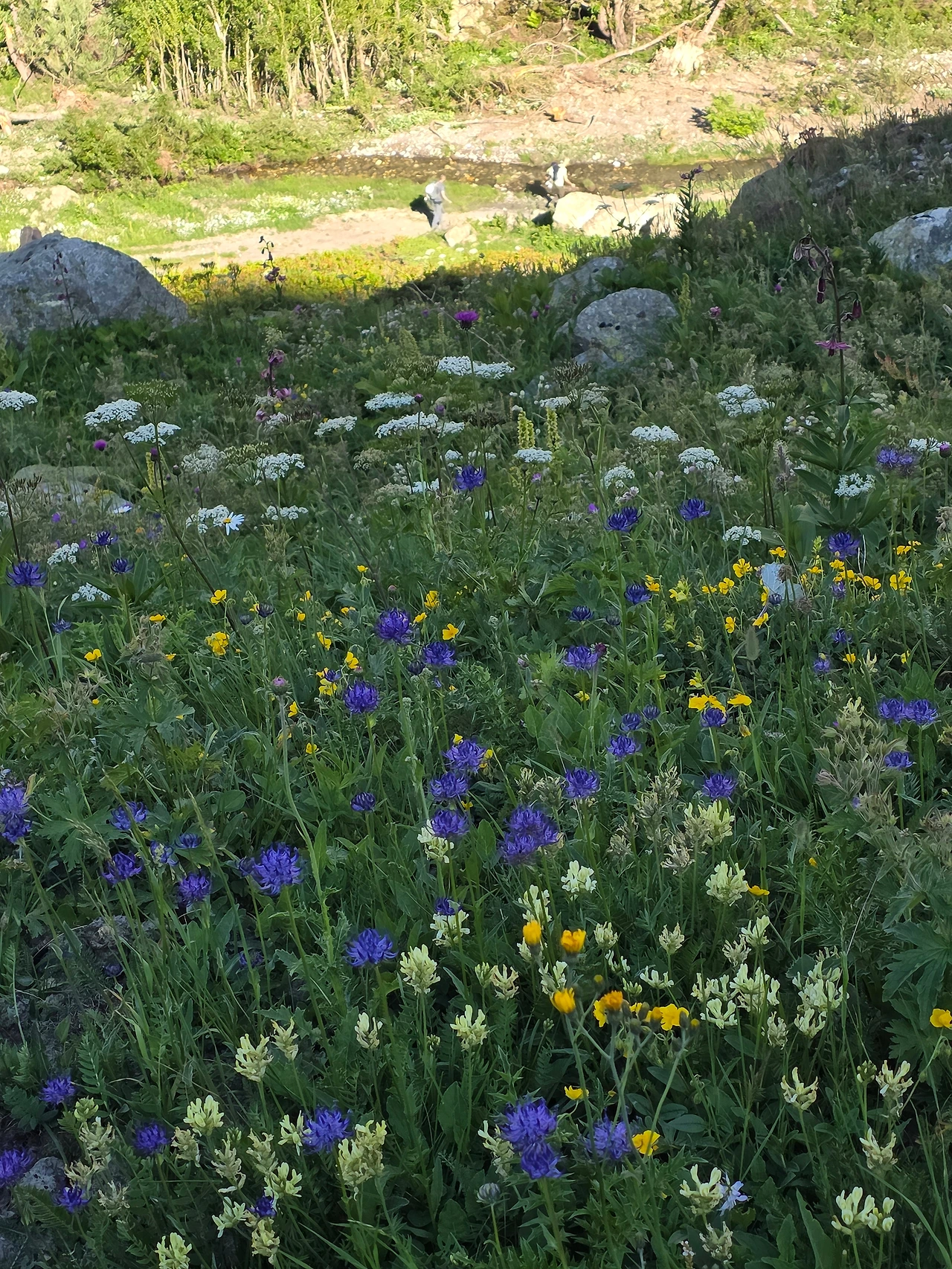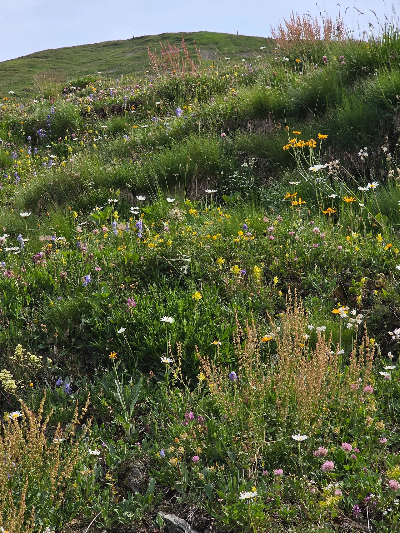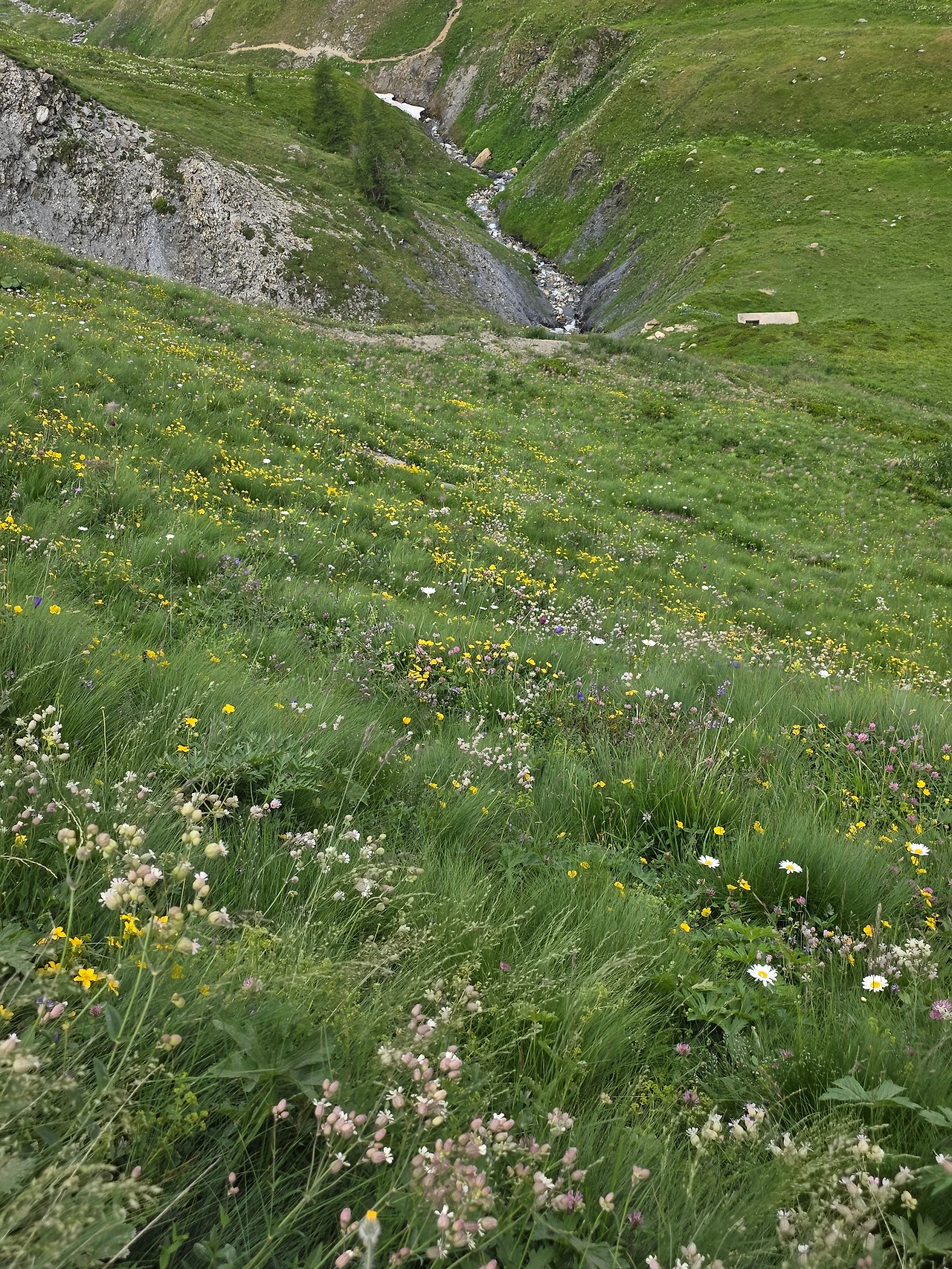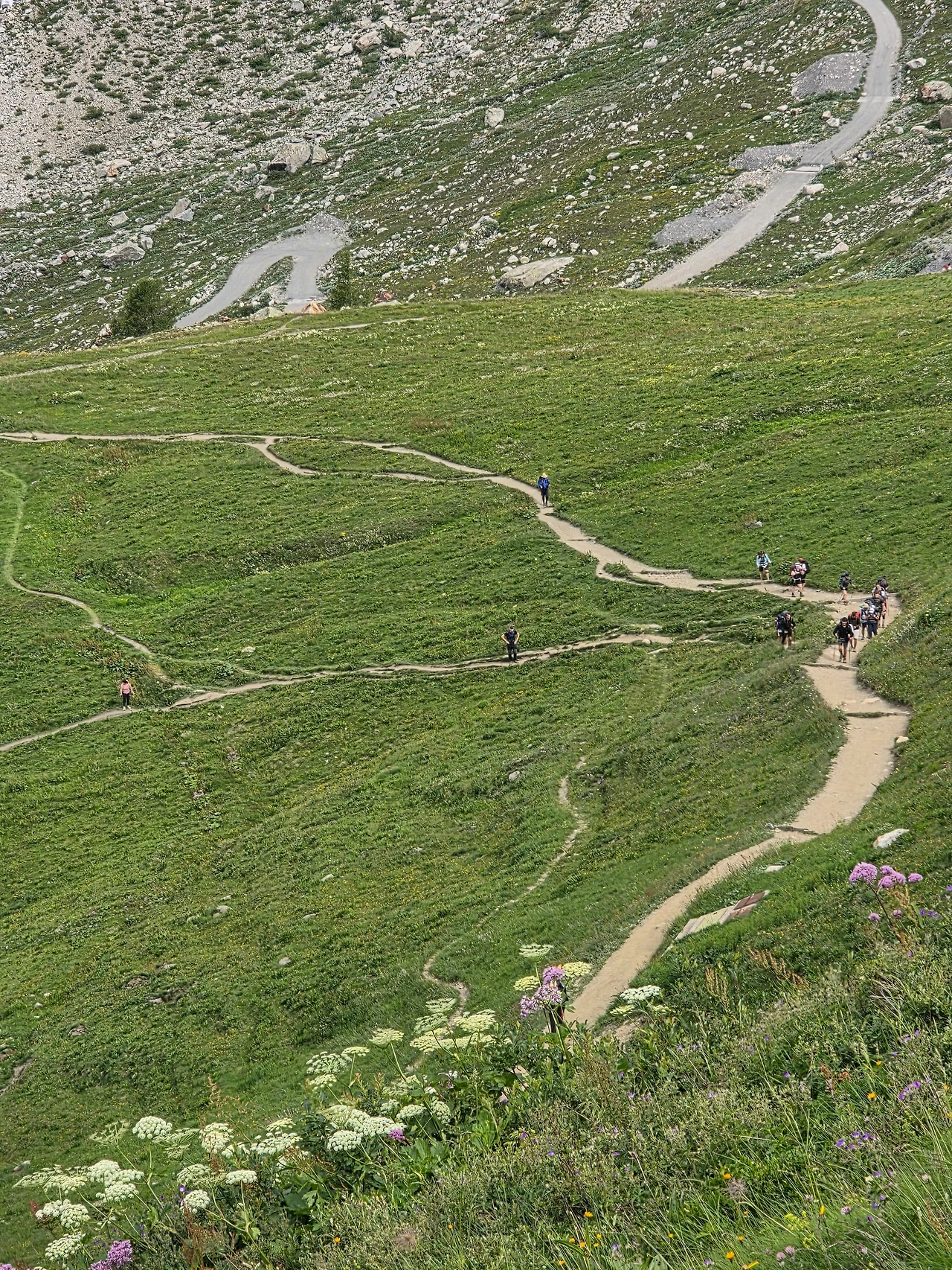 오늘도 먼저 눈길을 끄는 것은 다채로운 야생화들이다. 고지대로 식물들이 살기 쉽지 않은 환경이지만 이에 굴하지 않고 자기 삶을 씩씩하게 이어가는 것을 보면 작은 꽃 하나하나가 대견해 보인다. 몽블랑트레킹은 웅장한 산세도 대단하지만 낮은 곳에서 힘껏 살아가며 지면을 물들이는 꽃들도 대단한 볼거리다. 한 송이로도 충분하지만 다 같이 모여 피면 장관을 이루어 사람들에게 감동을 안긴다.