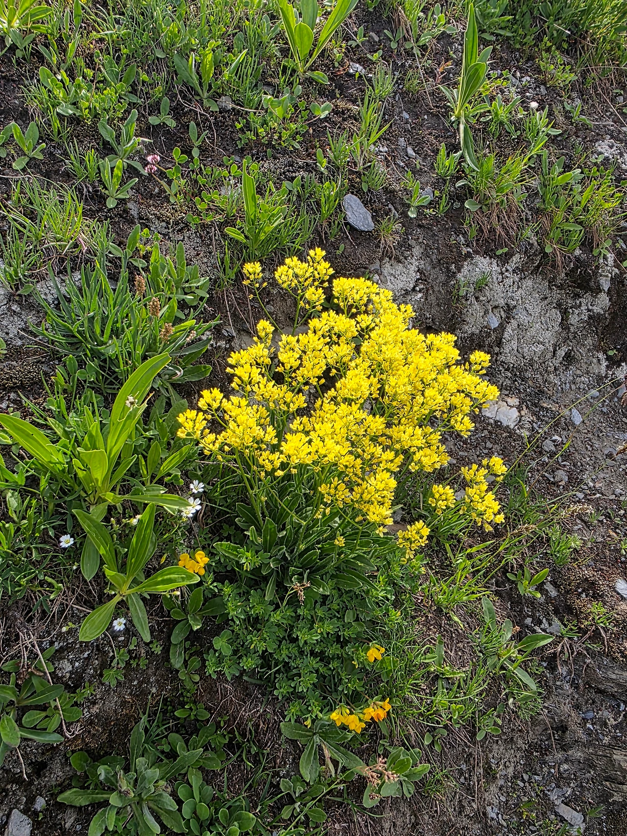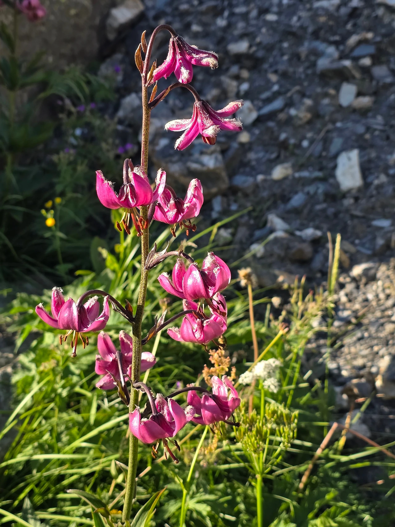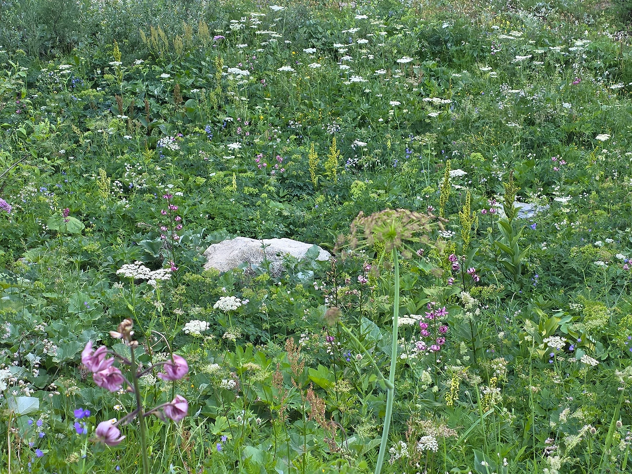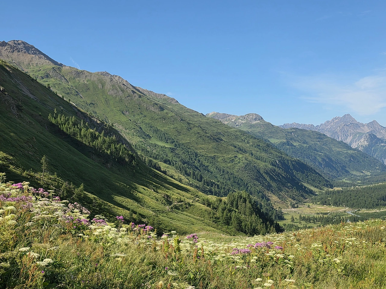 오늘도 먼저 눈길을 끄는 것은 다채로운 야생화들이다. 고지대로 식물들이 살기 쉽지 않은 환경이지만 이에 굴하지 않고 자기 삶을 씩씩하게 이어가는 것을 보면 작은 꽃 하나하나가 대견해 보인다. 몽블랑트레킹은 웅장한 산세도 대단하지만 낮은 곳에서 힘껏 살아가며 지면을 물들이는 꽃들도 대단한 볼거리다. 한 송이로도 충분하지만 다 같이 모여 피면 장관을 이루어 사람들에게 감동을 안긴다.