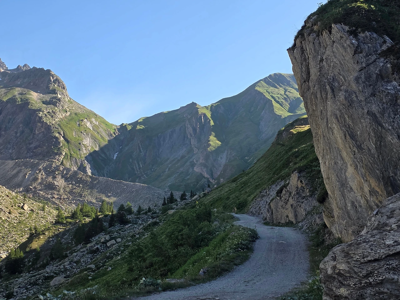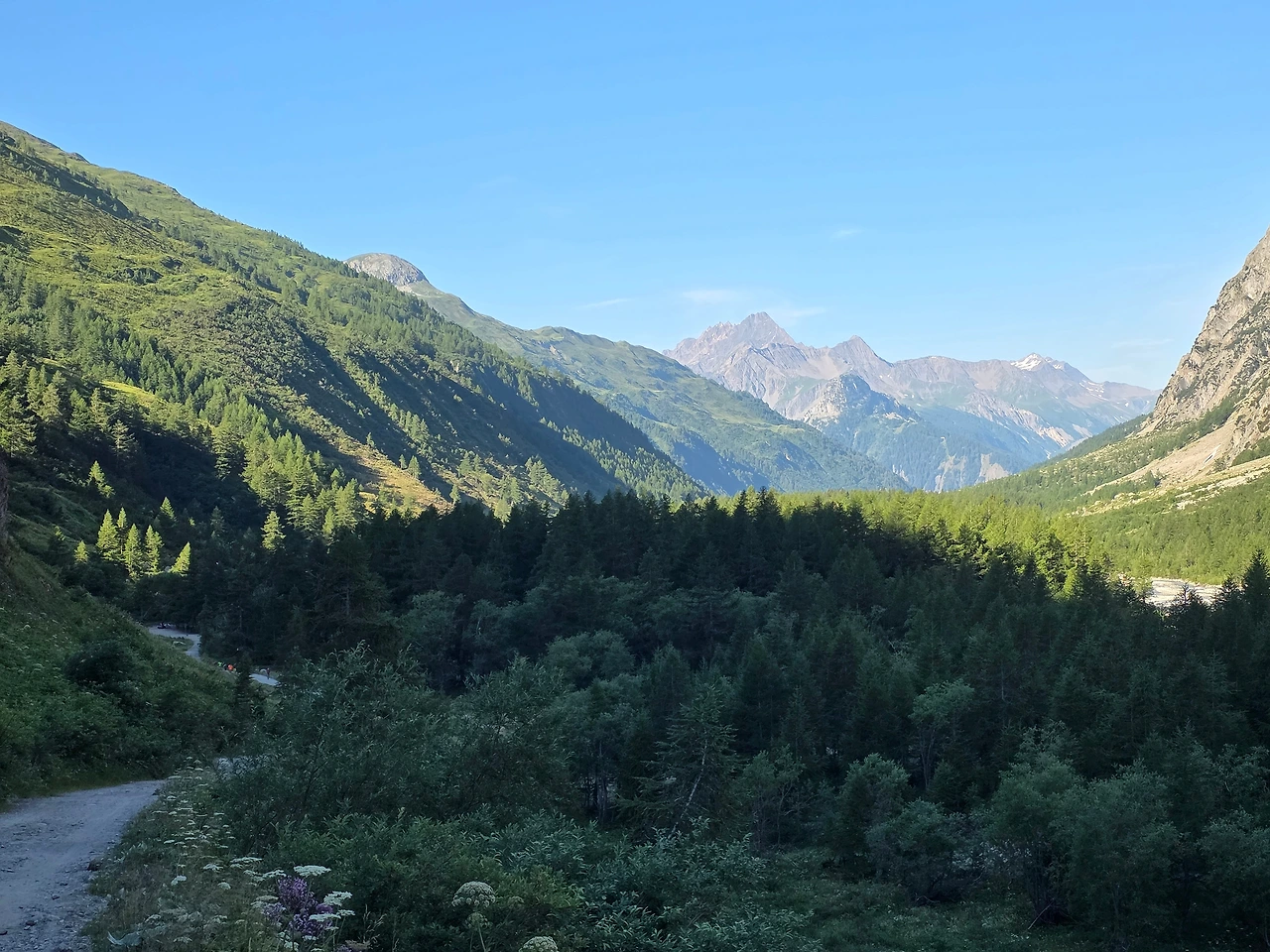이른 아침 상쾌한 길을 나선다. 어디서나 아침 자체가 신선하지만 청정한 알프스의 아침은 격이 다르다.