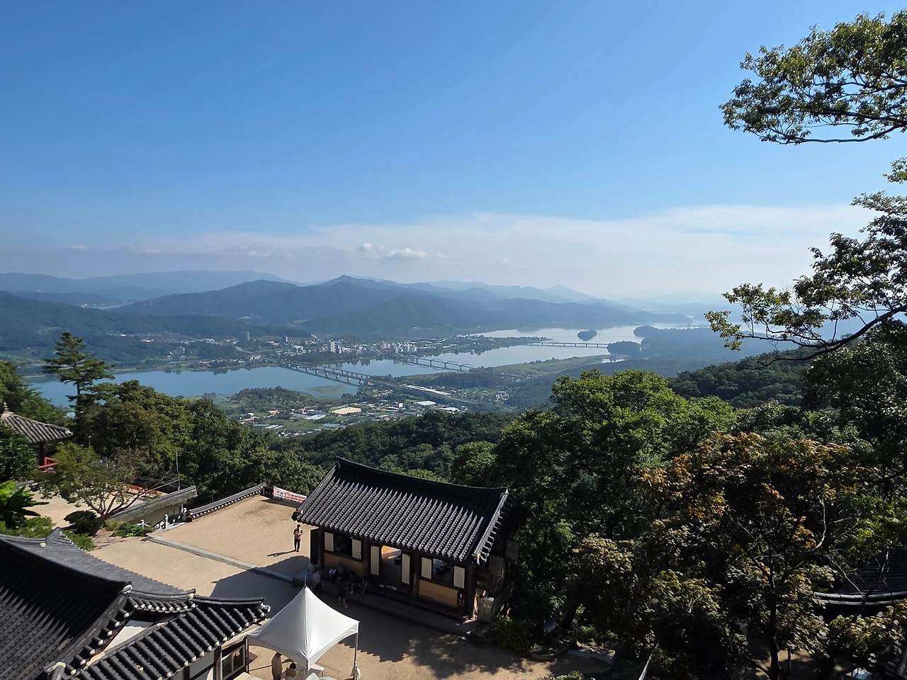 정원을 내내 걸었더니 시장기가 몰려온다. 주변 쌈밥집에서 향토색 짙은 풍성한 낮거리를 마치고 근처에 있는 수종사에 올랐다. 꽤 걸어야 하는 산길이지만 올라가서 내려다보는 경치는 수고를 넘치게 보상하고도 남았다. 더구나 산방에 앉아 무료로 즐기는 작설차는 호사가 분명했다. 좋은 친구가 있어 누리는 덕이다.