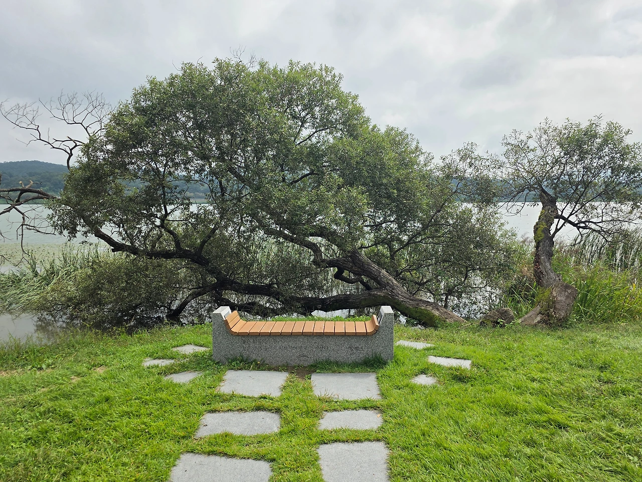 오솔길을 따라 강기슭으로 나아간다. 비가 내려 물이 불어난 북한강은 마치 호수 같다. 수면에는 고요와 평안이 묻어난다. 흐린 날의 분위기를 그대로 품은 수면은 하늘빛을 투영해 수묵화처럼 농담이 풀어져 있다. 이런 날은 사람을 들뜨게 만드는 화창한 날과 다르게 마음을 찬찬히 들여다보게 만든다. 좋은 날이란 따로 존재하지 않는 법이다. 내 마음이 어떻게 생각하느냐에 달렸다.