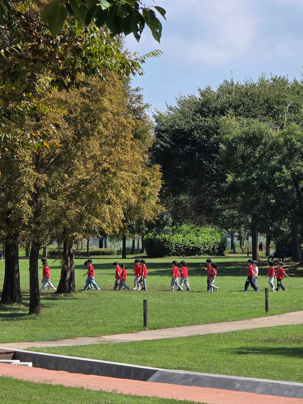 물의 정원에는 싱그러운 자연빛이 가득했다. 넓은 잔디밭과 가로수의 나뭇잎은 여전히 푸르렀다. 시월도 코 앞이지만 아직은 건강한 여름이 머문다. 이곳에는 철 따라 꽃이 피는 곳인데 오늘은 풀빛만 넘실댄다. 광활한 황화코스모스 꽃밭이 조성되었지만 꽃소식은 한참이 지나야 될 것 같다.