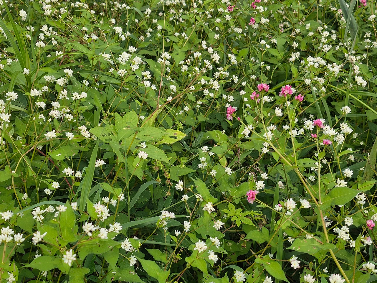 조성된 곳에는 꽃이 없지만 사람 손이 닿지 않은 물가 숲에는 귀여운 야생화들이 피었다. 붉은 고마리꽃과 흰 고마리꽃이 어울려 꽃밭을 이뤘다. 갈대와 억새도 소박한 가을꽃을 피우는 중이다.