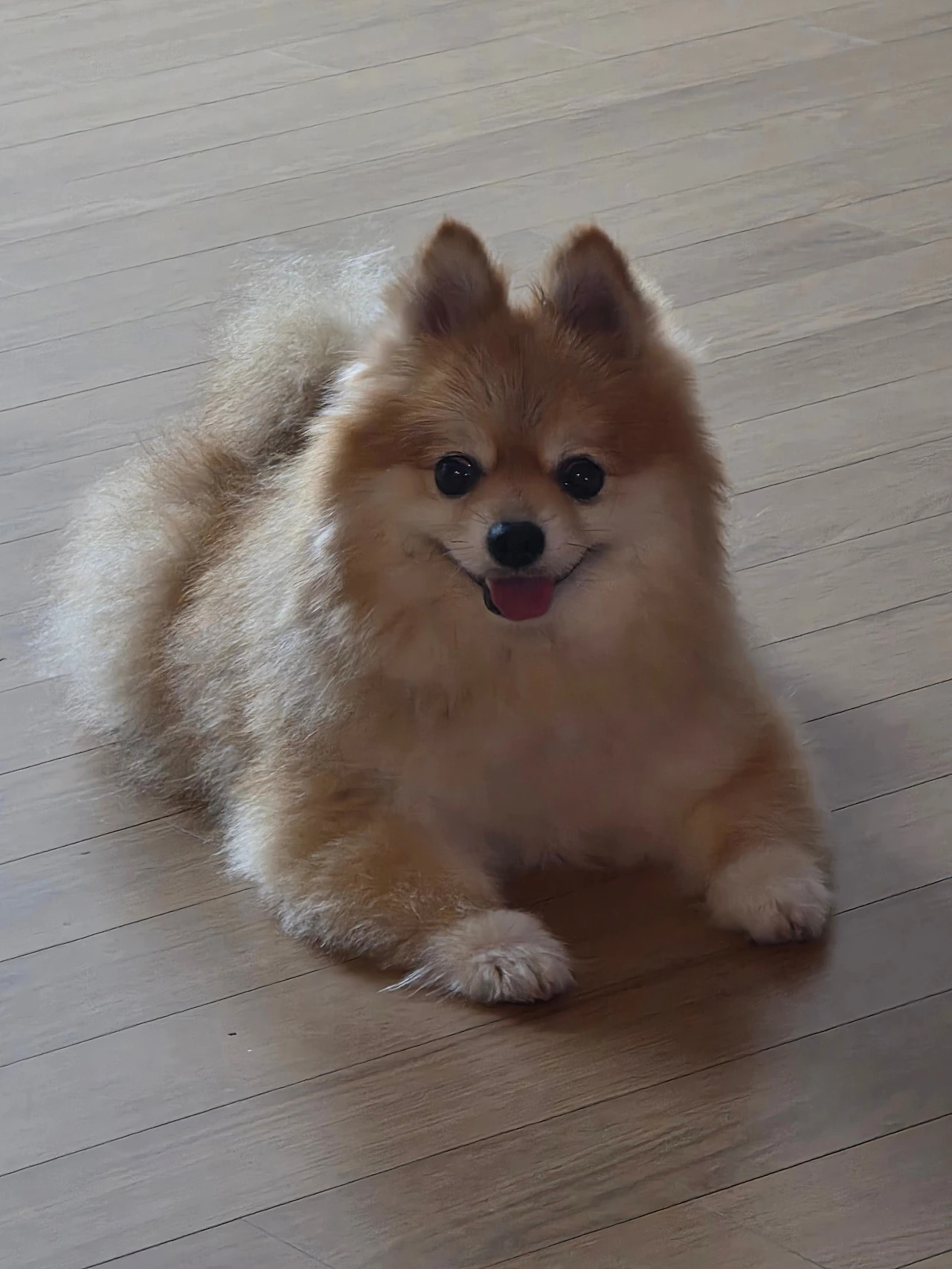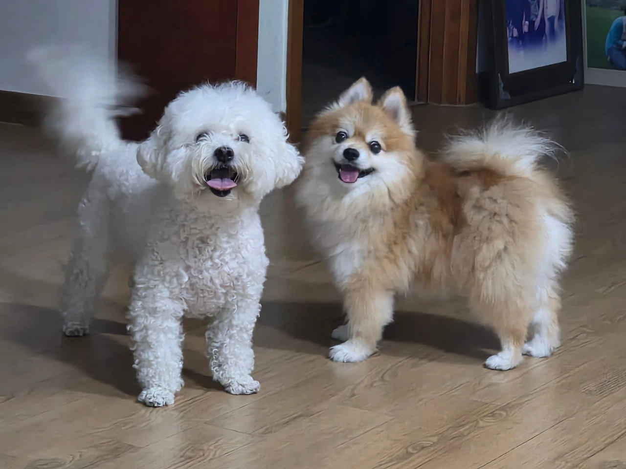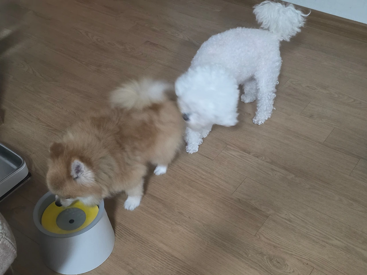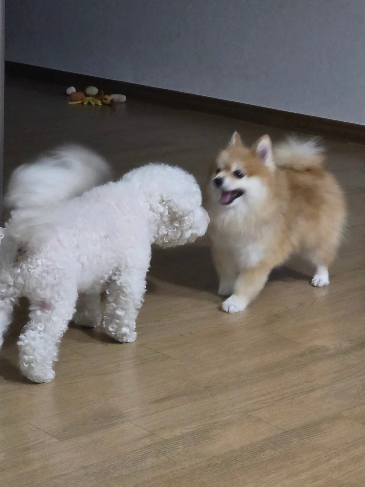 오늘 쁨이에게 여자친구가 찾아왔고 며칠을 함께 지내게 되었다. 이름은 포미이고 포메라이언이다.