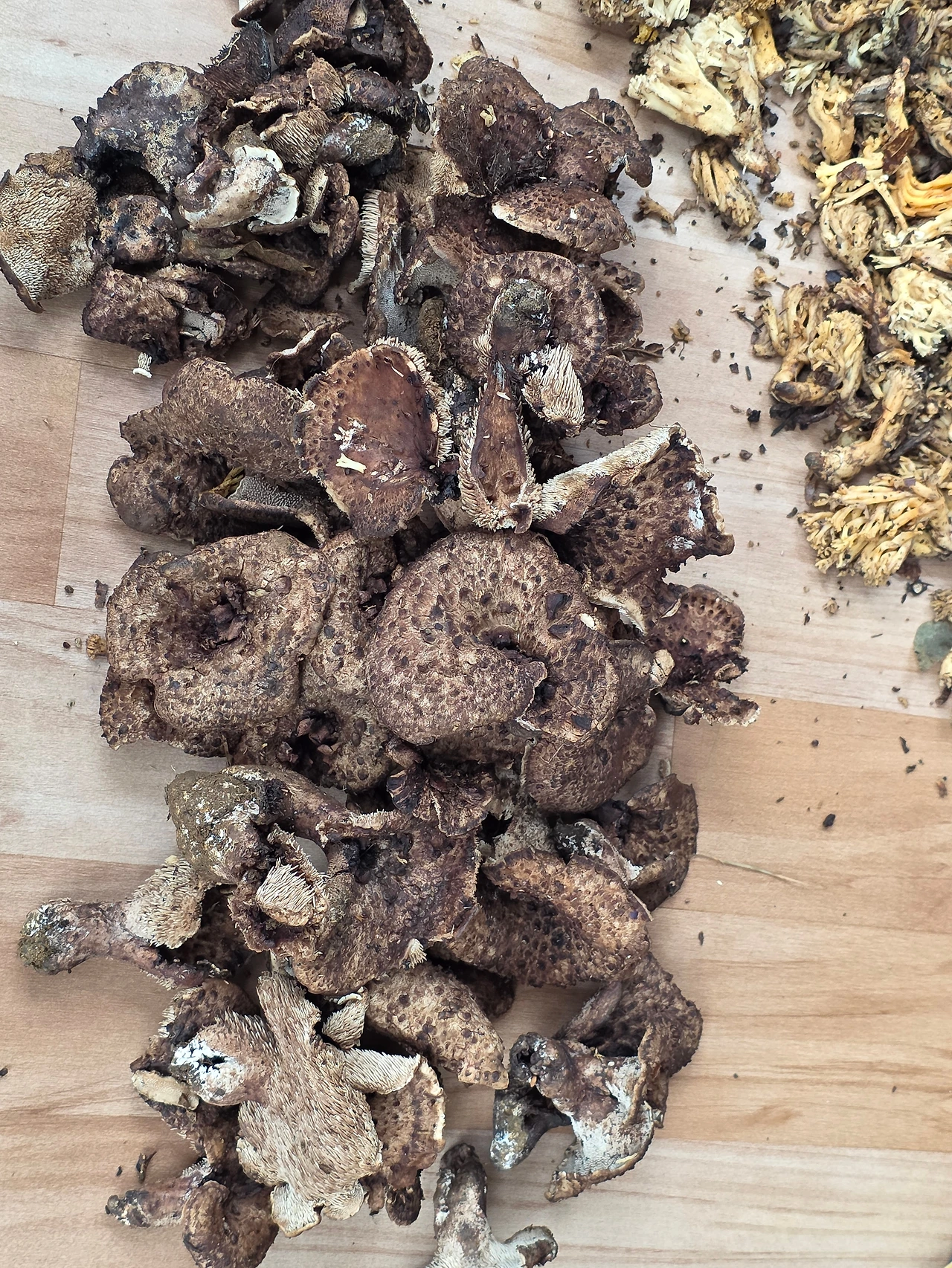 집에 와서 곧바로 처형은 능이 손질에 나섰다. 시골의 일은 끝이 없다. 지금까지 딴 능이버섯 중에 가장 부실한 것 같다고 하셨다. 비가 계속 내려서 능이가 튼실하지 않은 것이다. 버섯 꼬투리 하나하나마다 흙을 제거하고 이물질을 떼어내고 물로 깨끗이 씻었다. 처형이 능이를 보관하는 방법은 버섯을 잘게 찢어서 말리는 것이다. 그런 후에 필요할 때마다 조금씩 꺼내서 요리에 넣거나 물을 달여 마신다. 채취한 양이 작다고 하지만 내 눈에는 그렇게 보이지 않았다. 늘어놓은 능이로 집안에는 진한 향기가 가득하다.