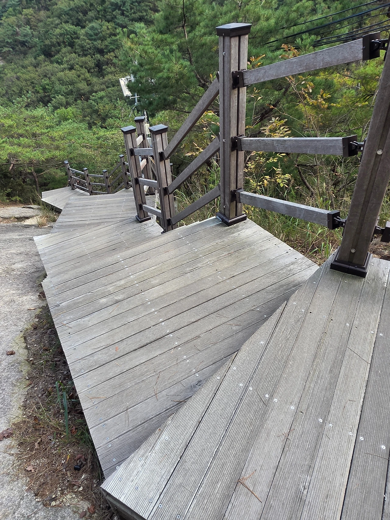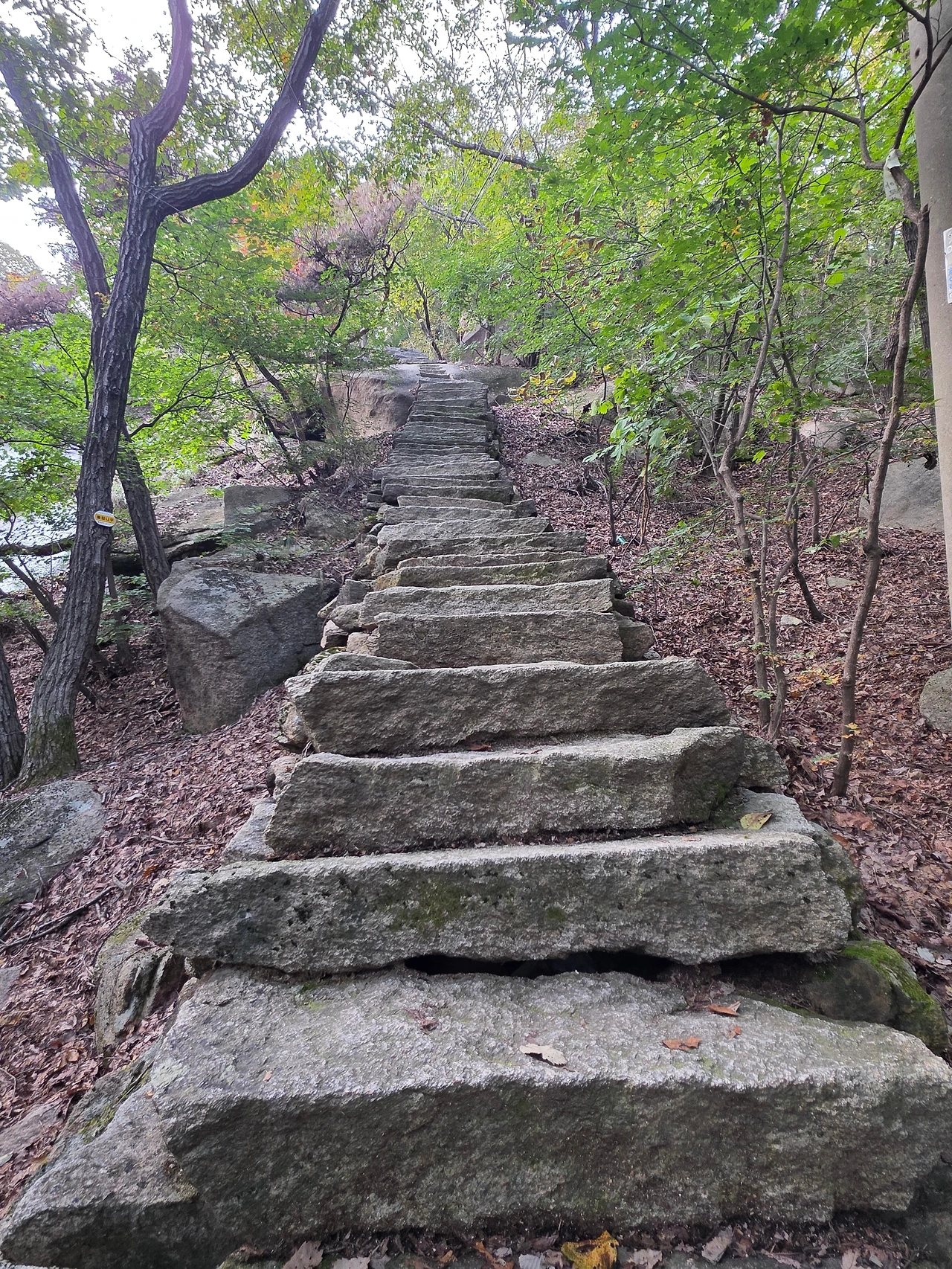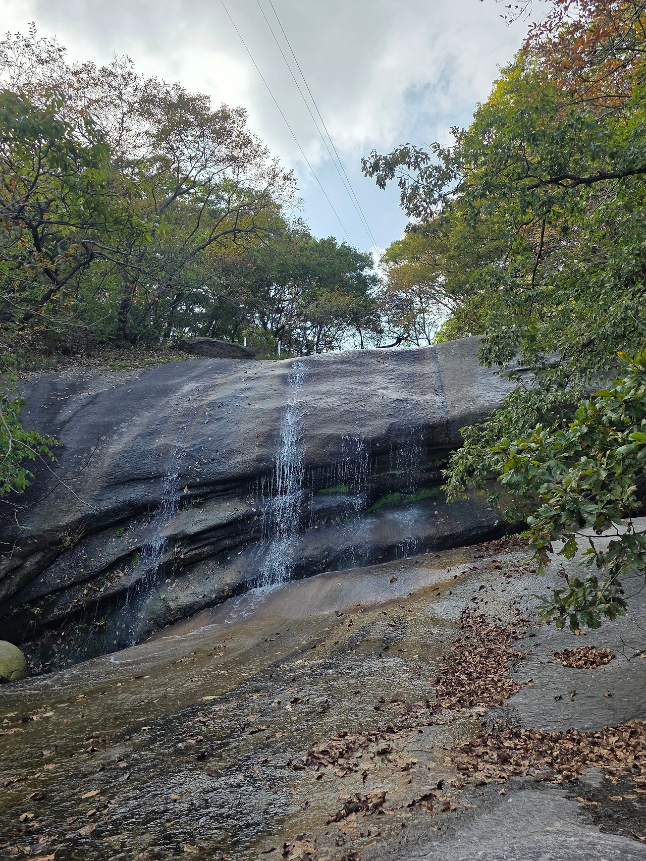 하산하는 길에 만난 계곡과 길은 고즈넉하고 정취가 가득했다. 특히 다듬은 긴 돌로 조성된 계단길은 우리의 마음을 사로잡았다. 경사가 급해서 위험한 길이라는 팻말이 있었지만 그 길을 택해서 내려올 만한 충분한 가치가 있는 길이었다. 계곡은 깊었고 계곡이 깎아지른 바위를 흘러내린 물은 비단결 같다. 하산 길에는 이런 폭포들이 이어진다.