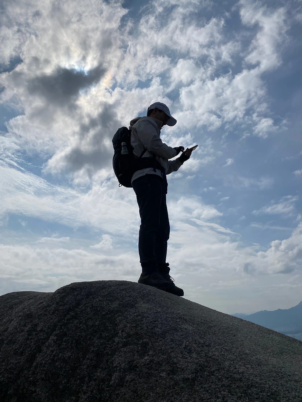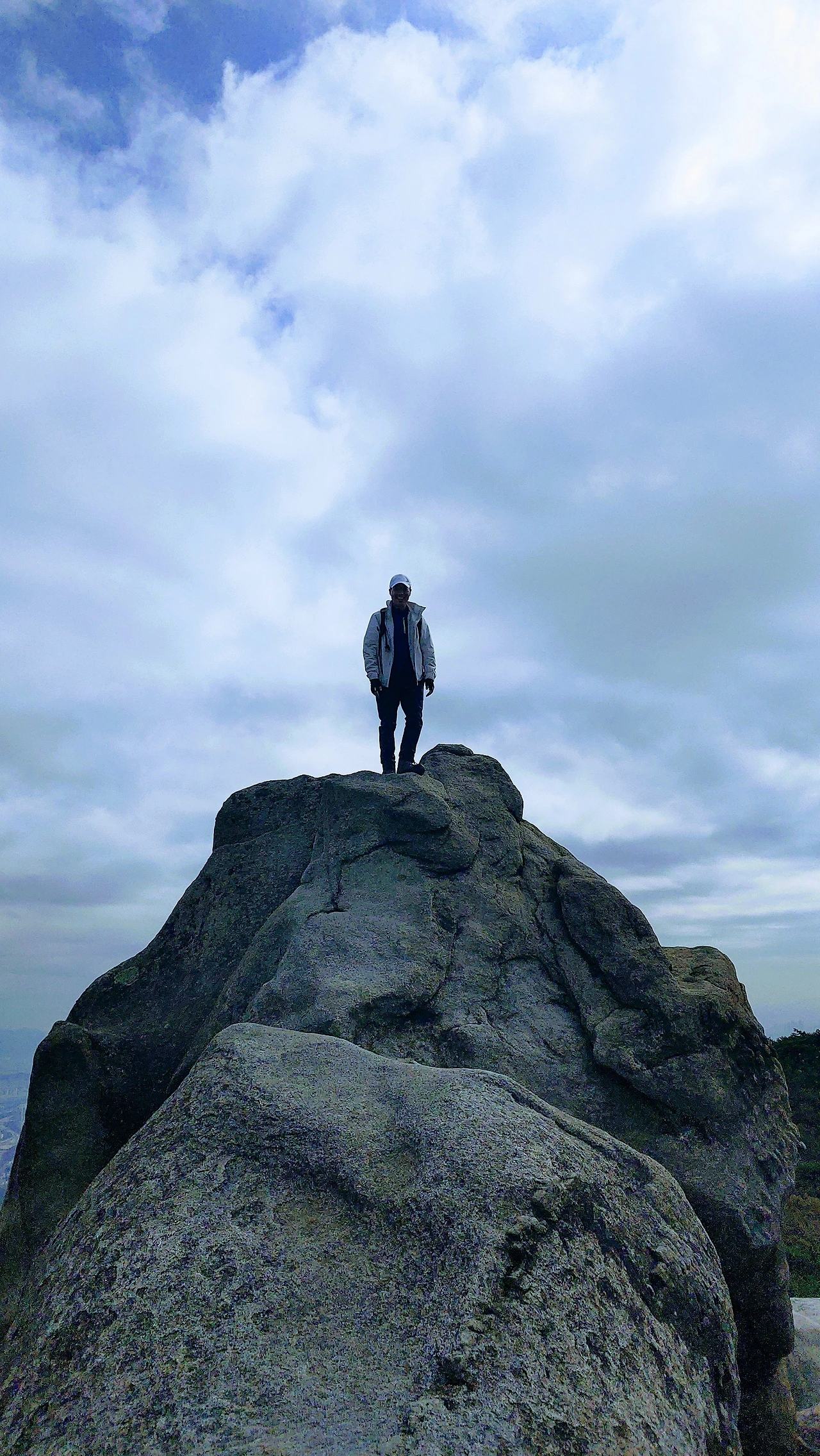 산등성이에 올라서야 밋밋한 산과는 차별화된 풍경이 눈에 들어왔다. 정상인 주봉 주위로 기암들이 줄지어 있다. 멀리로는 도봉산, 북한산, 불암산도 보인다. 순탄한 능선길이 끝나고 암벽길을 올랐다. 등산화가 미끄럽지 않아 경사진 바위 위를 성큼성큼 걸었다. 좋은 등산화는 산행의 필수 장비다. 바위 봉우리를 올라서면 더 매력적인 경치가 펼쳐진다. 심심한 산행이 다이내믹해지는 순간이다. 고소공포증이 있어 높은 곳을 싫어하지만 용기를 냈다. 바위에 올라서면 겁은 나지만 장엄한 풍광이 눈앞에 펼쳐지기 때문이다.