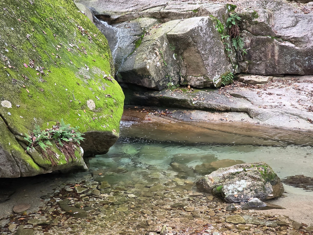 호젓한 산길에는 자연의 소리가 흘러넘친다. 바람소리, 물소리, 새소리 그리고 내 발자국 소리.... 특히 우렁차게 쏟아지는 시원한 물소리가 우리들의 마음을 정갈하게 씻어주는 듯하다. 하류에는 맑은 물들이 모여있어 수려한 경치를 선사한다. 당장 뛰어들고픈 마음이 들 정도다.