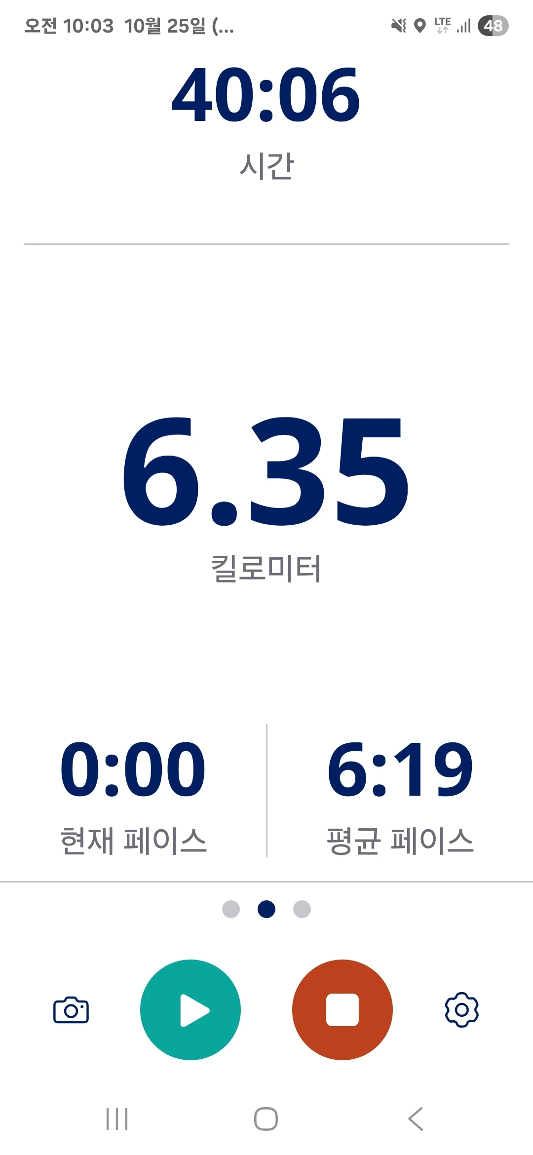 마침내 40분이 되었다. 속도를 내서 달렸기에 힘이 들지만 뿌듯한 피곤함이다. 6.35킬로미터를 달렸고 평균 속도는 6분 19초다. 목표를 달성했다.