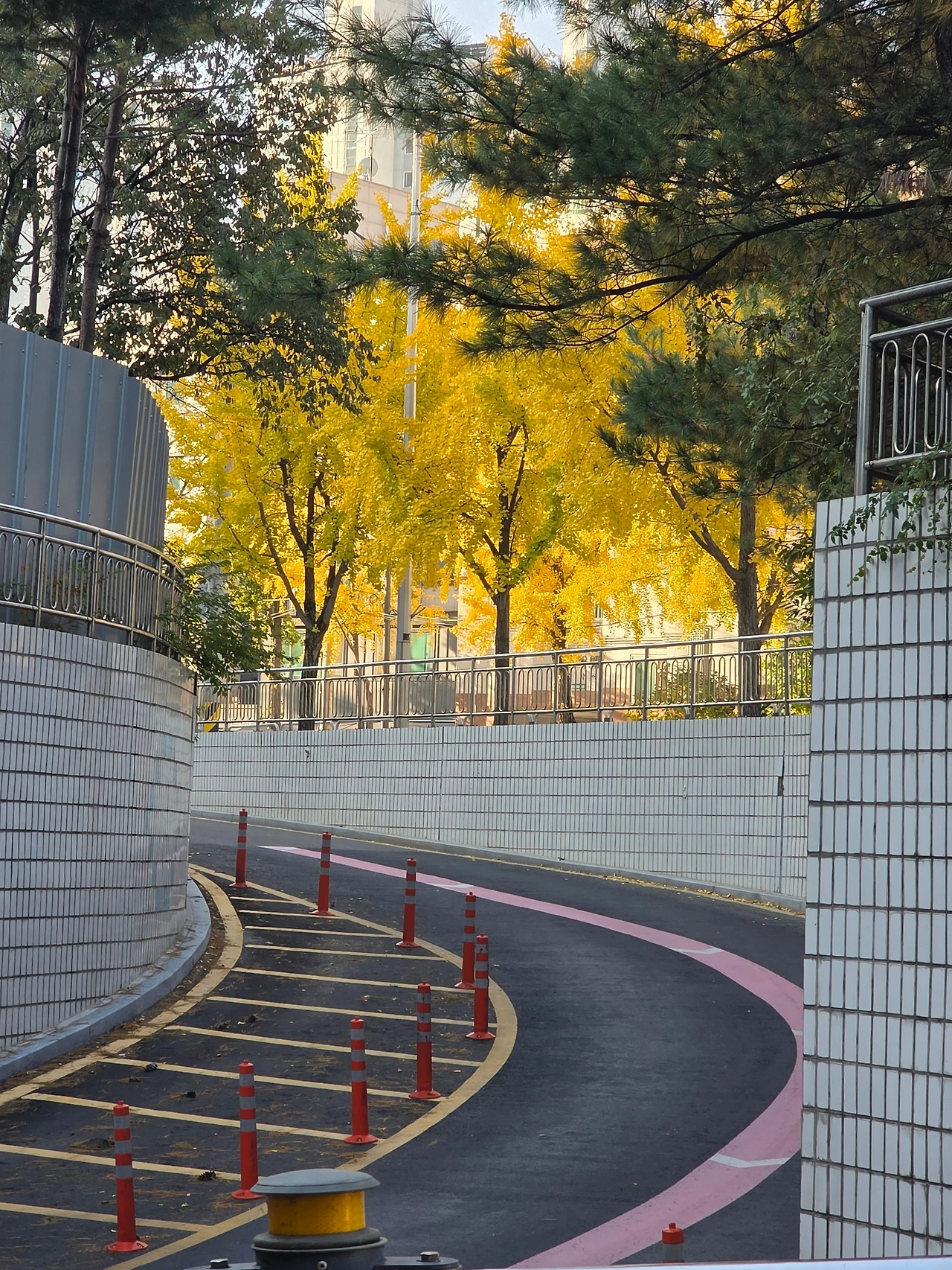 아침 수영을 다녀오는 길에도 만났다. 차도 사이에 노랗게 물든 은행나무가 주인공이다. 도심의 여백을 고운 색으로 채웠다.