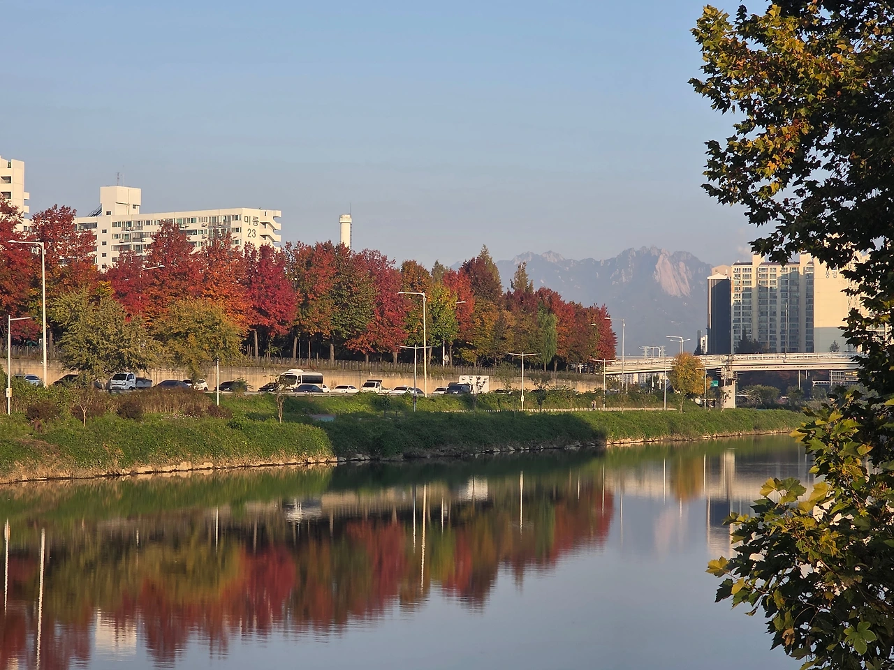 도봉산을 올라 물든 단풍을 만났지만 집 근처에서도 충분히 아름다운 단풍을 보았다. 따릉이를 타고 중랑천을 달리면서 만난 가로수다. 그저 앞만 보고 달리면 볼 수 없지만 주위를 조금만 둘러봐도 얼마든지 찾을 수 있다. 같은 느티나무라도 각기 다른 색으로 채색이 되어 알록달록한 것이 한눈에 보아도 참 예쁘다.