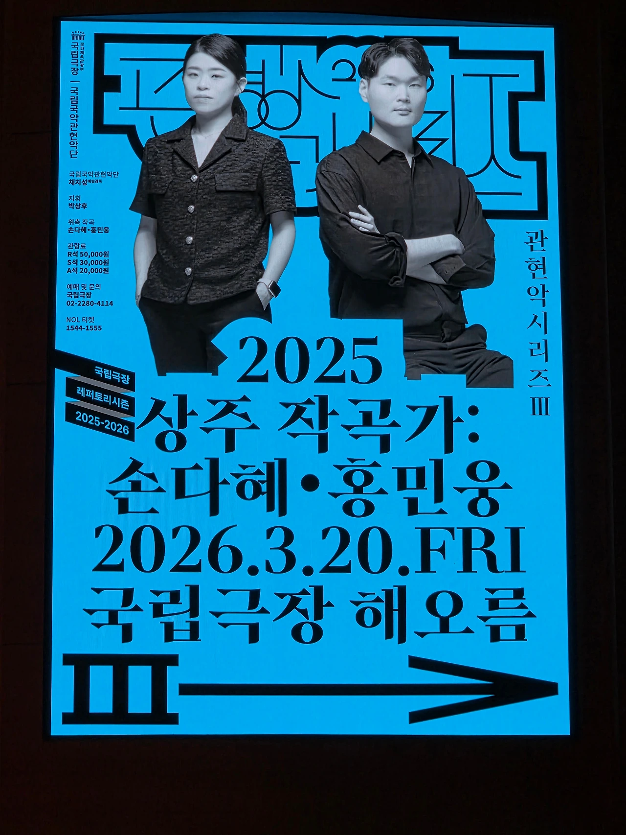 오늘은 국악관현악단의 관현악시리즈 2025 상주 작곡가 손다혜, 홍민웅의 창작곡 공연이다.