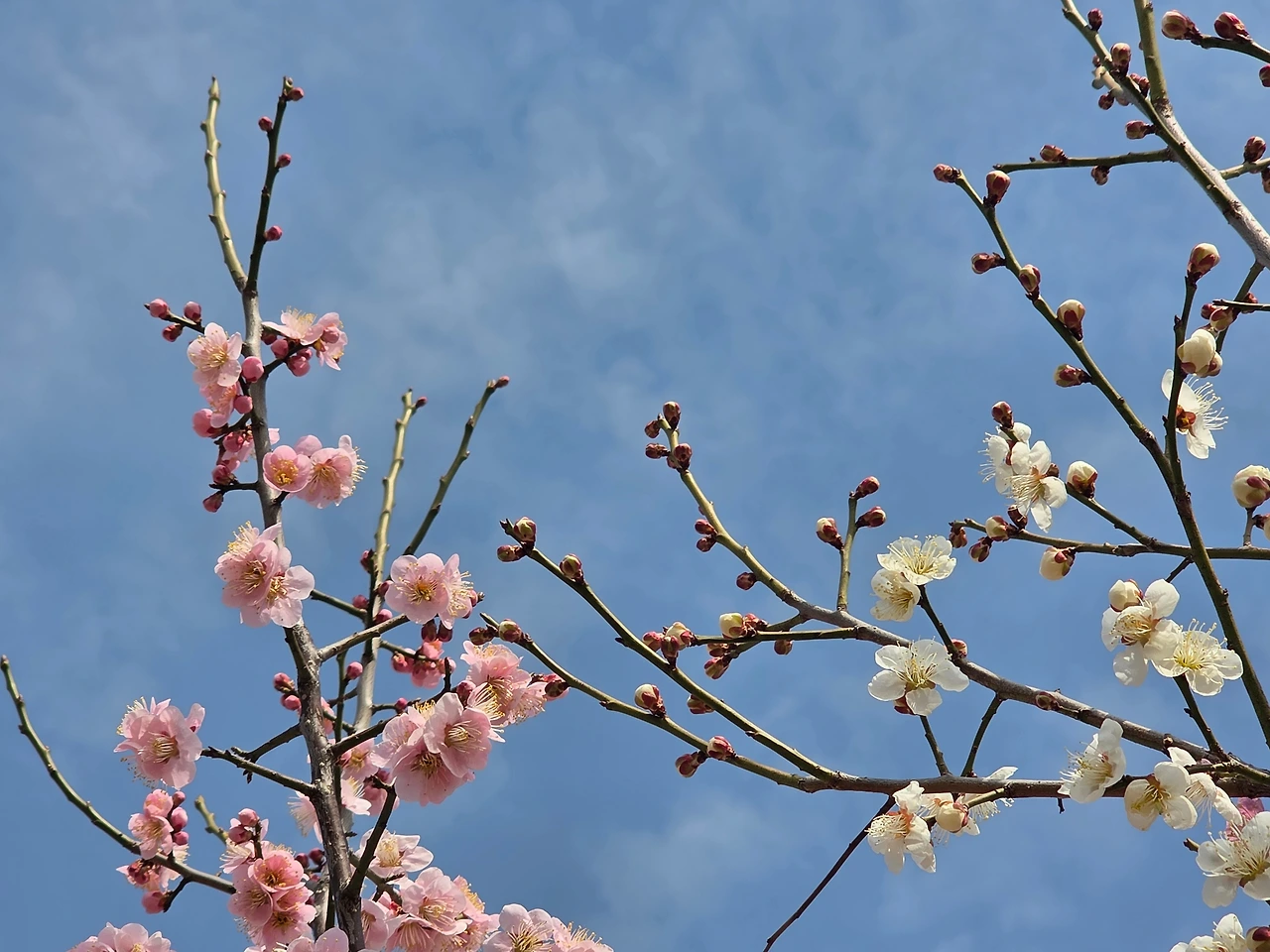 낮 기온이 많이 올라 덥기까지 해서 외투를 벗어야 했다. 봄나들이로는 아주 그만인 날이다. 미세 먼지가 나쁘다는 예보가 있었지만 그런대로 화창한 날이어서 하늘빛도 적당히 푸르러서 하늘을 향해 핀 꽃송이들도 하늘하늘 예뻐 보인다.