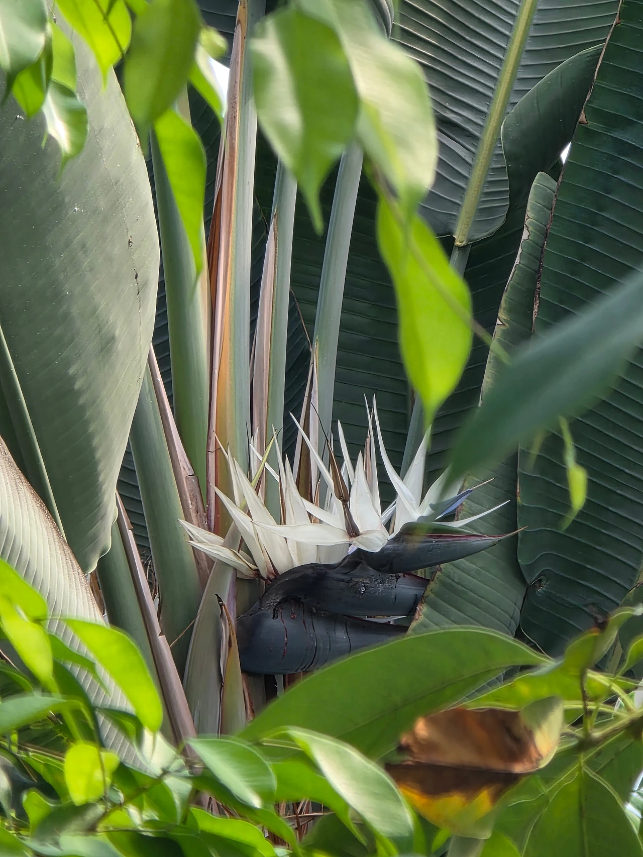 온실은 숨겨놓은 보물창고 같다. 꼼꼼히 둘러보면 숨어있는 꽃들이 나타난다. 흰 극락조화를 발견했고 무성한 줄기 속에 핀 고운 꽃들의 귀여운 얼굴을 만났다. 심지어 커피콩 열매도 찾았다.