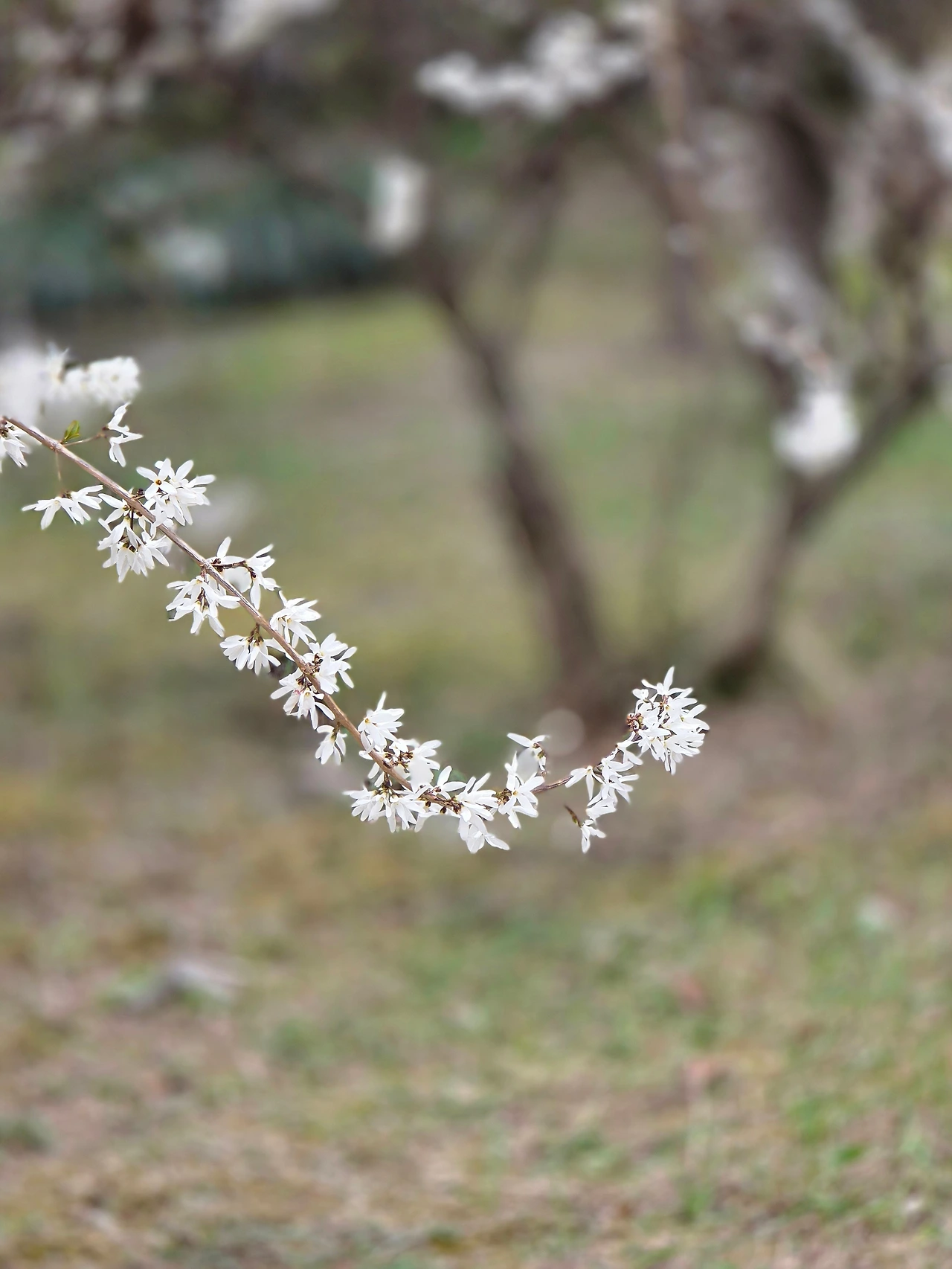 궁에는 우리나라 특산인 미선나무가 자란다. 미선나무마다 순백의 꽃을 일제히 터뜨렸다. 고궁 한편에 흰개나리로도 불리는 미선나무와 노란 개나리와 조화를 이루고 있다.