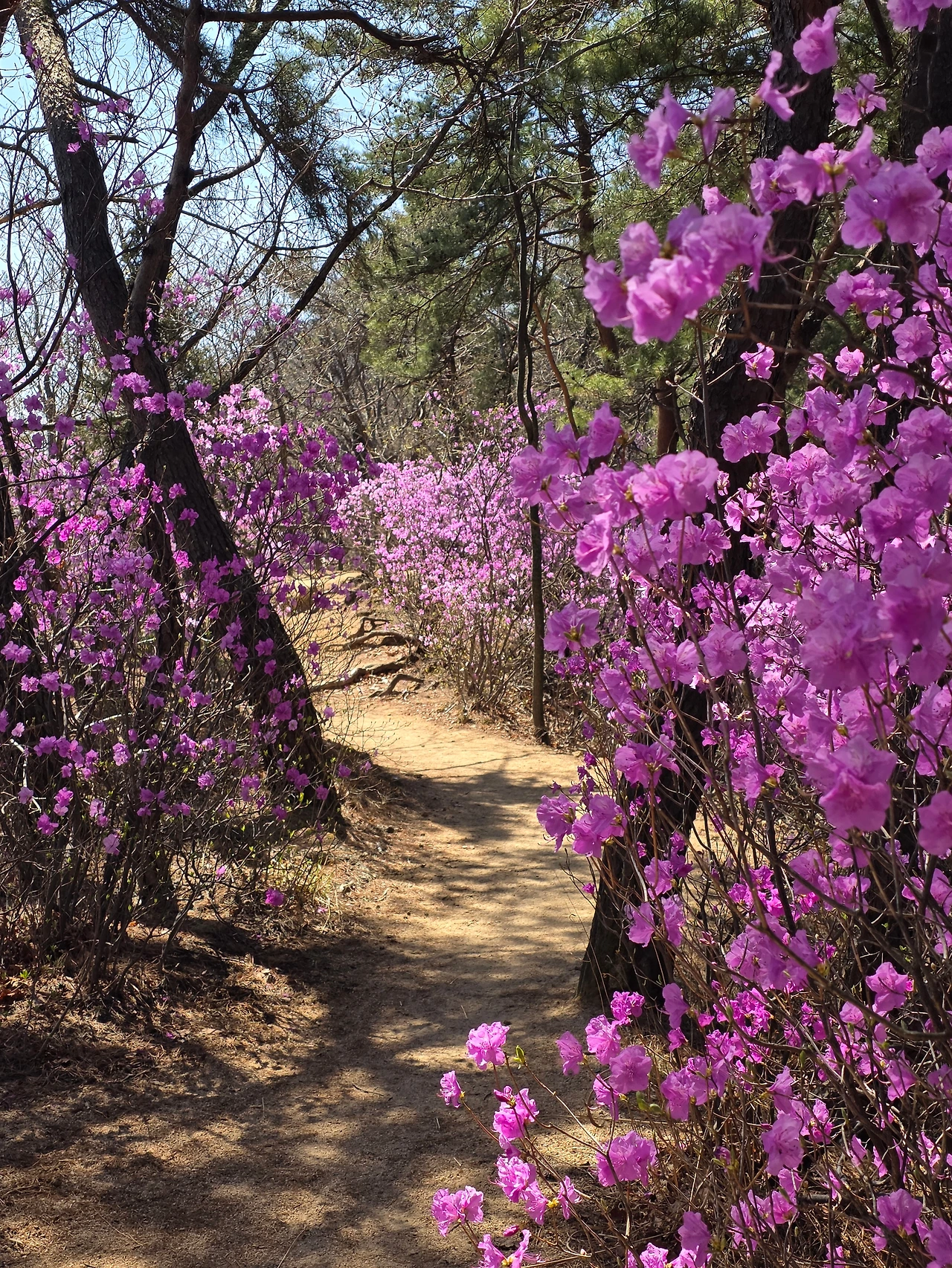 하산길에도 여전히 진달래가 있었지만 질리도록 보아서인지 처음보다 감흥이 많이 줄었다. 무엇이든 지나치게 많은 것은 조금 모자람만 못한 것 같다.