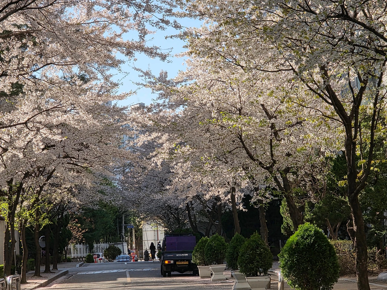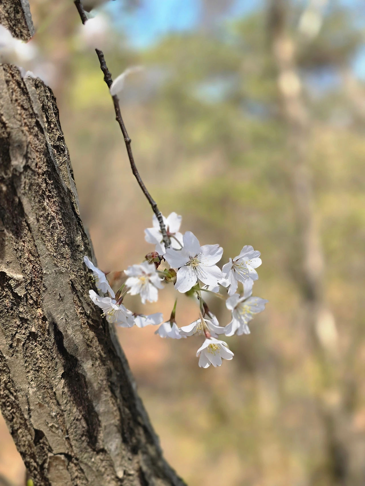 쾌청한 날씨로 오늘 산행에 대한 기대가 컸다. 산초입부터 역시나 선명한 풍경이 기대를 저버리지 않는다. 산자락에 벚꽃이 흐드러지게 피어 단박에 눈길을 끈다. 북한산에는 봄이 한창 익고 있었다.