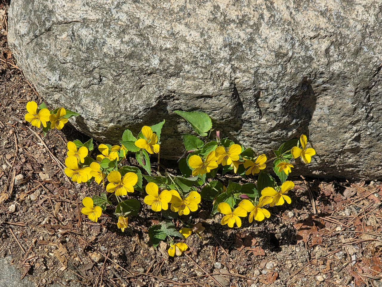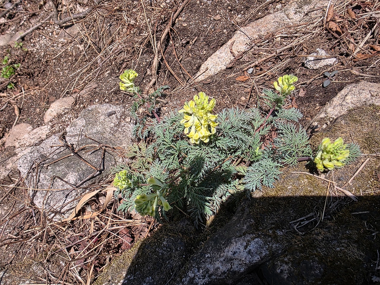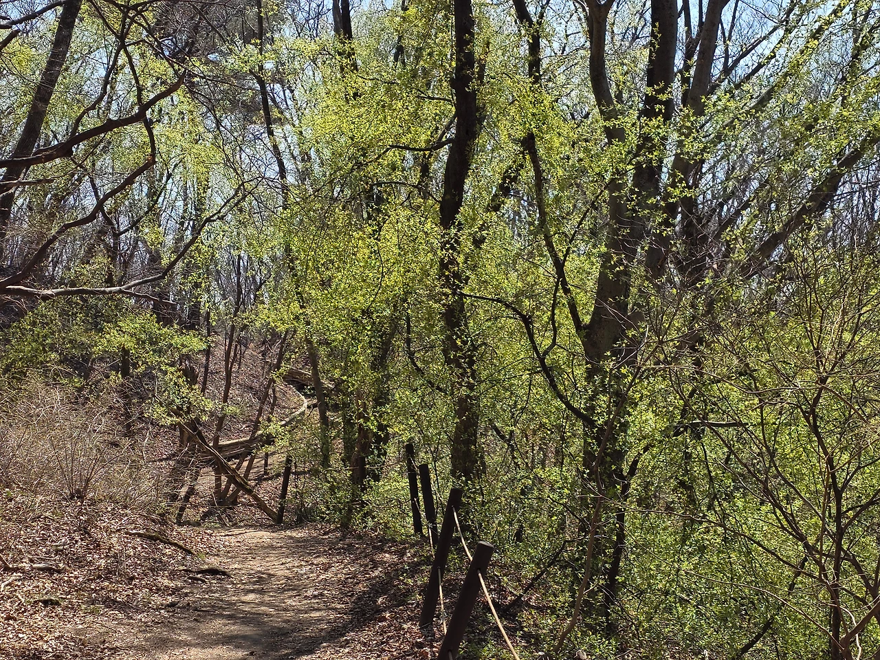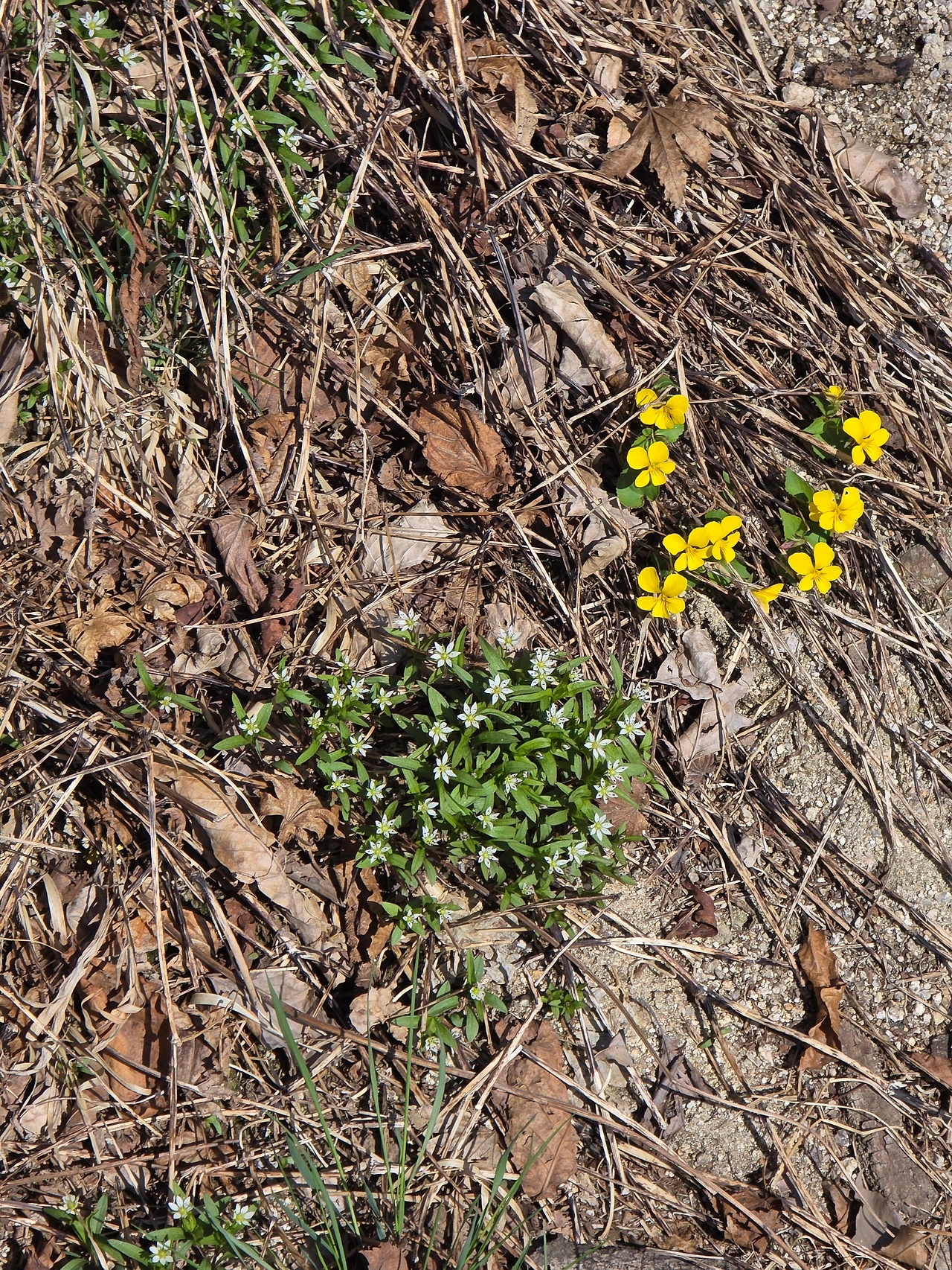 간간이 산개나리도 피었다. 노란 원색의 꽃이 인상적이다. 귀한 야생화도 만났다. 처녀치마를 처음 보았다. 노란 제비꽃은 아주 흔했고 흰 제비꽃은 드물었다. 개별꽃도 정상 가까이 가면서 많아졌고 산괴불주머니도 보였다. 버들강아지도 눈에 들어온다. 기특한 녀석들이 낮은 곳에서 제 할 일을 야무지게 하는 중이다. 반가운 친구들을 많이 만나 더 즐거운 산행이 되었다.