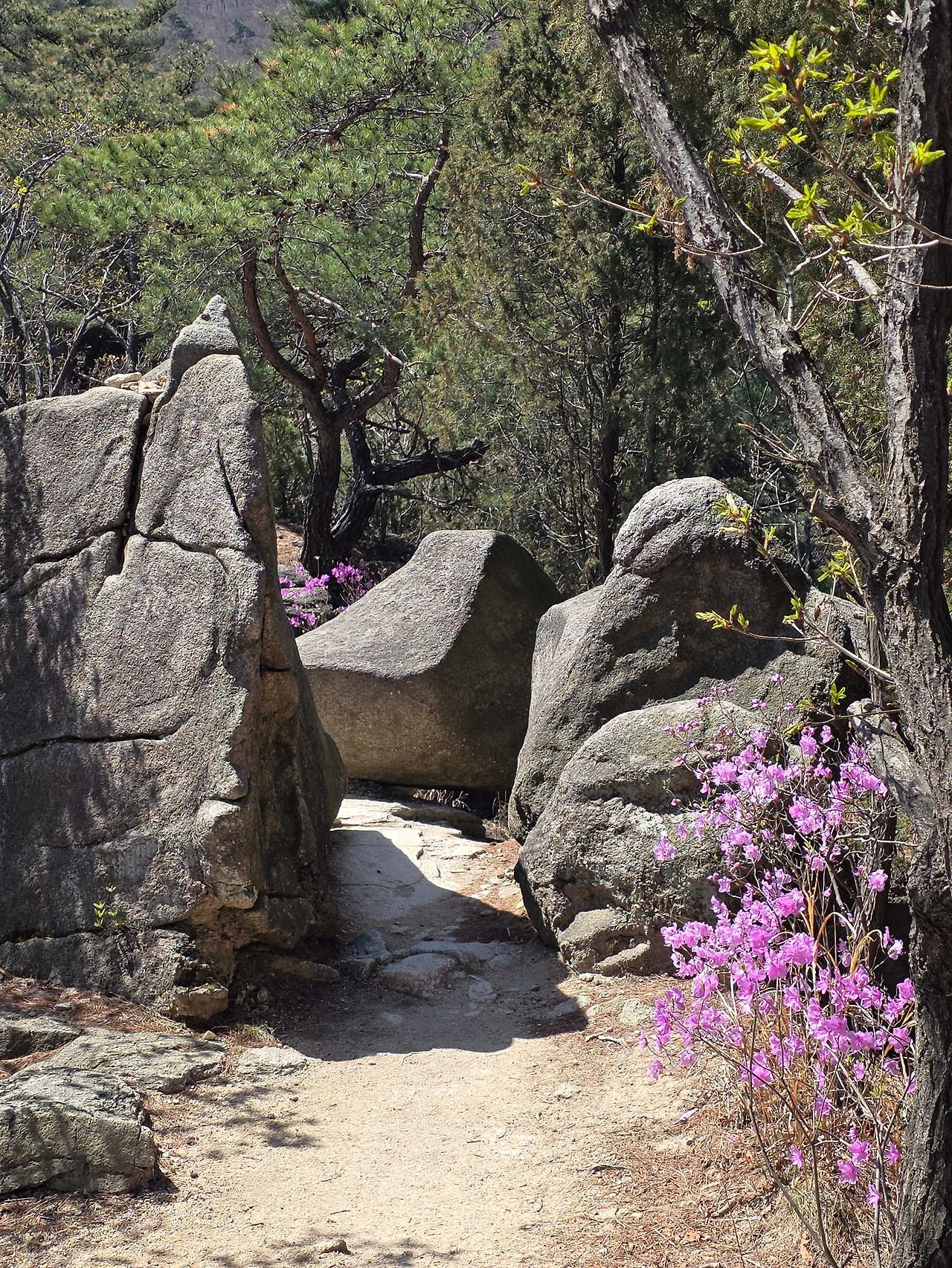 평일인데도 등산객들이 꽤 많다. 놀라운 것은 외국인 비율이 훨씬 높다는 것이다. 미국인을 비롯, 스웨덴, 독일. 오스트리아. 벨기에까지 국적도 다양하다. 한국의 아름다운 봄을 알리게 되어 한편으로는 아주 뿌듯하다.