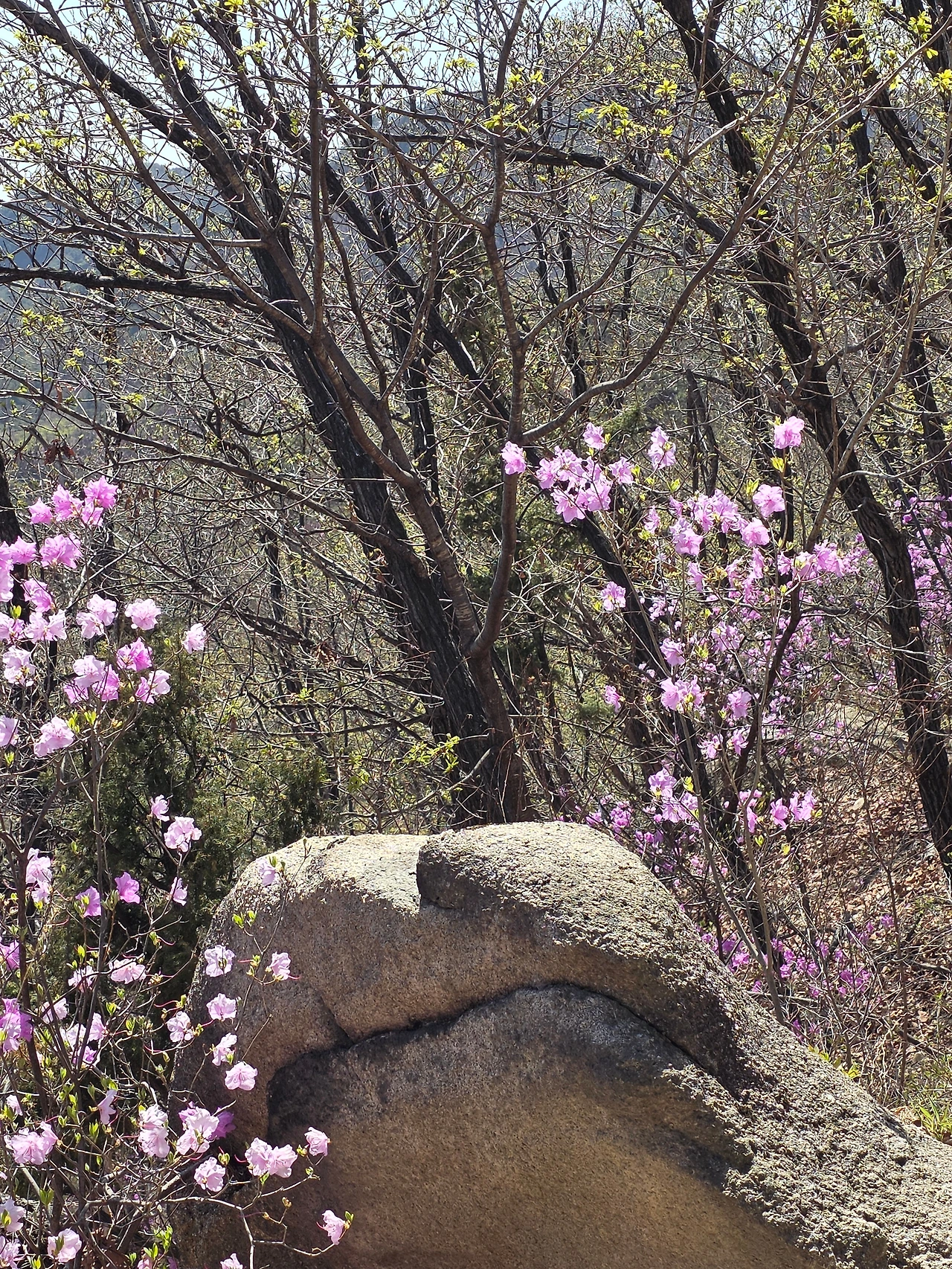 여기저기 피어나는 꽃소식에 이미 피었다 져버렸으면 어쩌나 하고 마음을 졸이며 갔다. 운 좋게도 진달래꽃을 제대로 볼 수 있는 아주 완벽한 시간이고 기회였다. 북한산 진달래 능선에는 눈 가는 곳 어디나 만발한 진달래의 향연이 펼쳐졌다. 눈이 호강한 아주 특별한 날이었다. 거기에 더하여 캐나다인 마이크와 산행을 함께 하며 아주 친해지는 복도 누렸다.