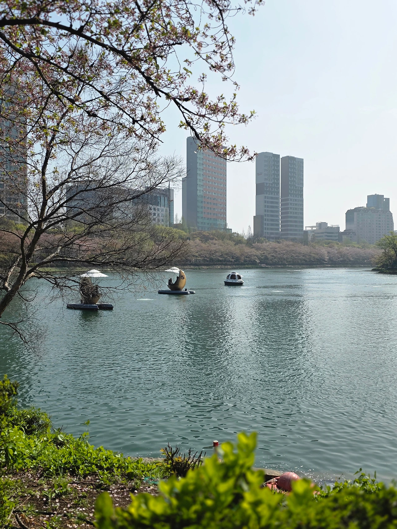 호수의 벚꽃은 거의 졌지만 산책로에는 인파들이 가득했다. 꽃이 없어서 서운할 것 같았는데 그렇지 않았다. 초록 잎들이 가지를 물들이고 있어서 만개할 때 흰색의 단조로움과 다르게 다채로운 파스텔톤의 부드러운 색감이 싱그러운 풍경을 빚어 놓았다. 오히려 성숙한 봄기운이 물씬 풍겼다.