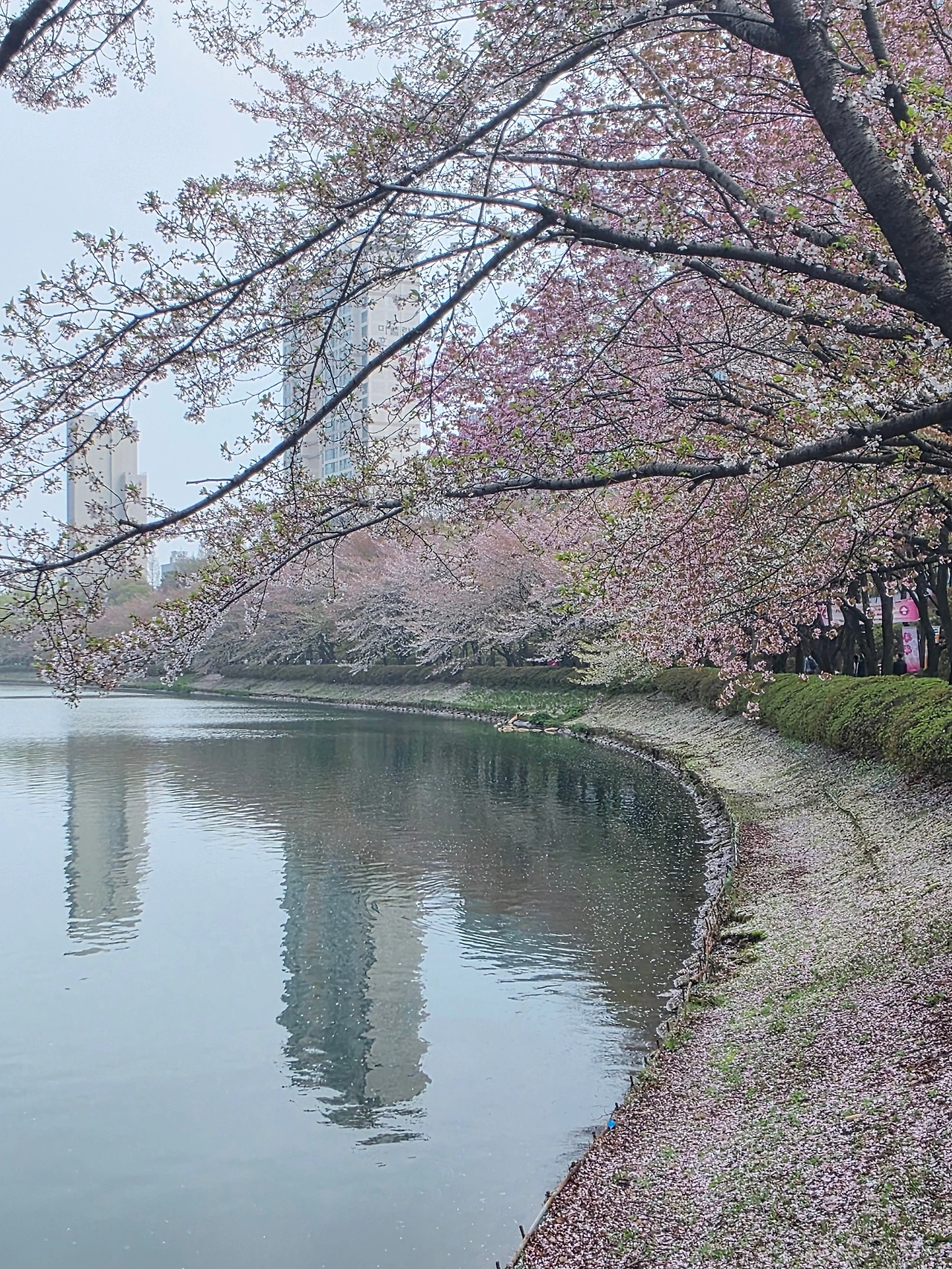 꽃이 절정의 시기에는 발 디딜 틈도 없이 인파가 넘쳤을 텐데 지금은 한가한 편이라 산책은 여유로웠다. 흐렸던 하늘도 점차 개여서 화창한 기운이 감돌아 봄나들이 기분이 났다. 기온도 춥지도 덥지도 않아 산보하기에는 아주 좋은 날이었다.