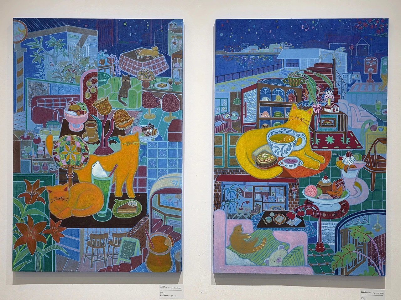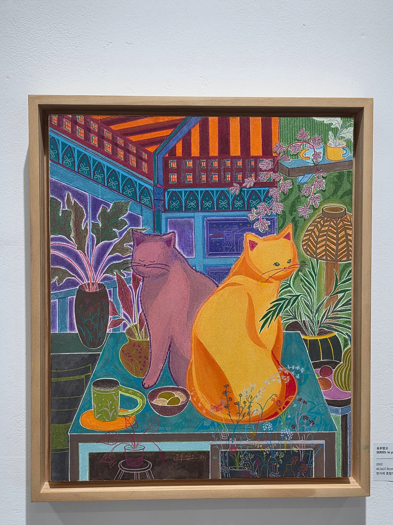 서쪽 호수 입구에 갤러리가 있었다. 딱히 바쁜 일정이 아니었기에 여유로운 마음으로 들어갔다. 실내를 아기자기하게 꾸며 놓아 호수를 배경으로 사진을 찍기에 그만인 장소였다. 작가들의 그림도 전시 중이어서 사랑스러운 고양이와 고운 꽃 그림을 감상했다.