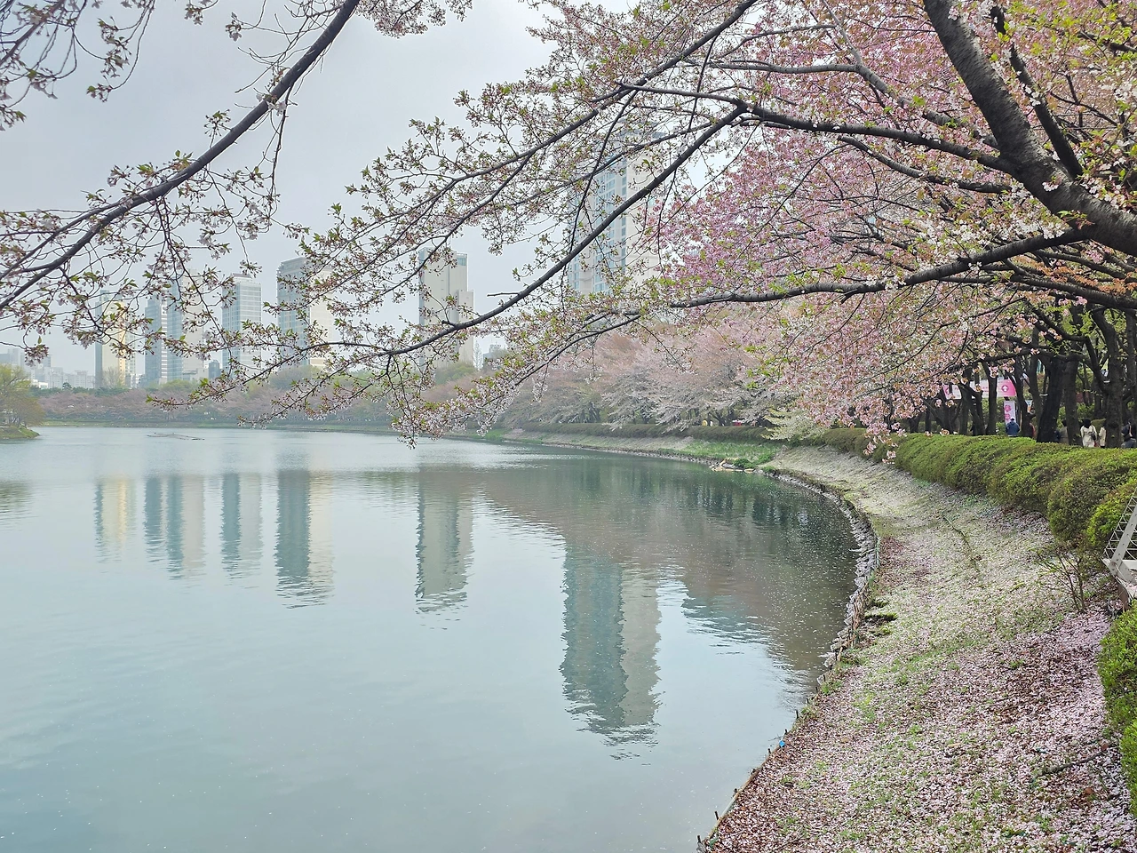 주말을 맞아 모처럼 아내와 시간을 보낼 여유가 났다. 어디를 갈까 생각 중이었는데, 마침 마음이 통했는지 교회 형님으로부터 연락이 왔다. 석촌호수에서 만나자는 반가운 소식이 온 것이다. 그렇게 벚꽃이 지고 있는 석촌호수를 찾았다. 때가 지난 시기라 큰 기대 없이 그저 산책을 즐기자는 마음이었다. 벚꽃은 떨어지고 있었지만 호수 산책길은 또 다른 매력으로 아주 만족스러운 시간을 가졌다.
