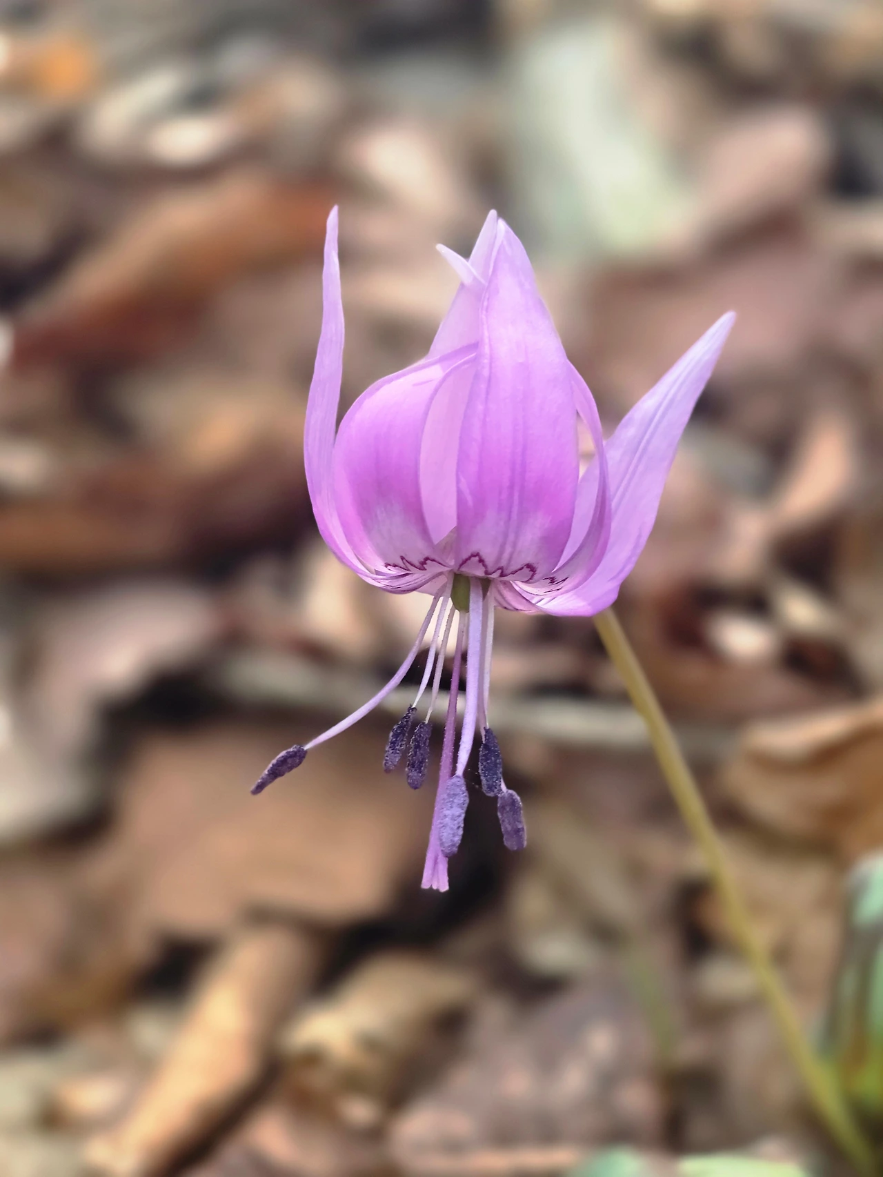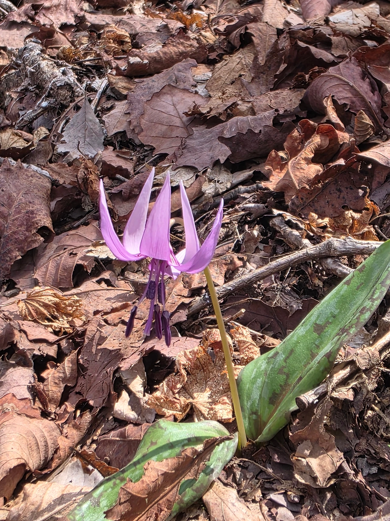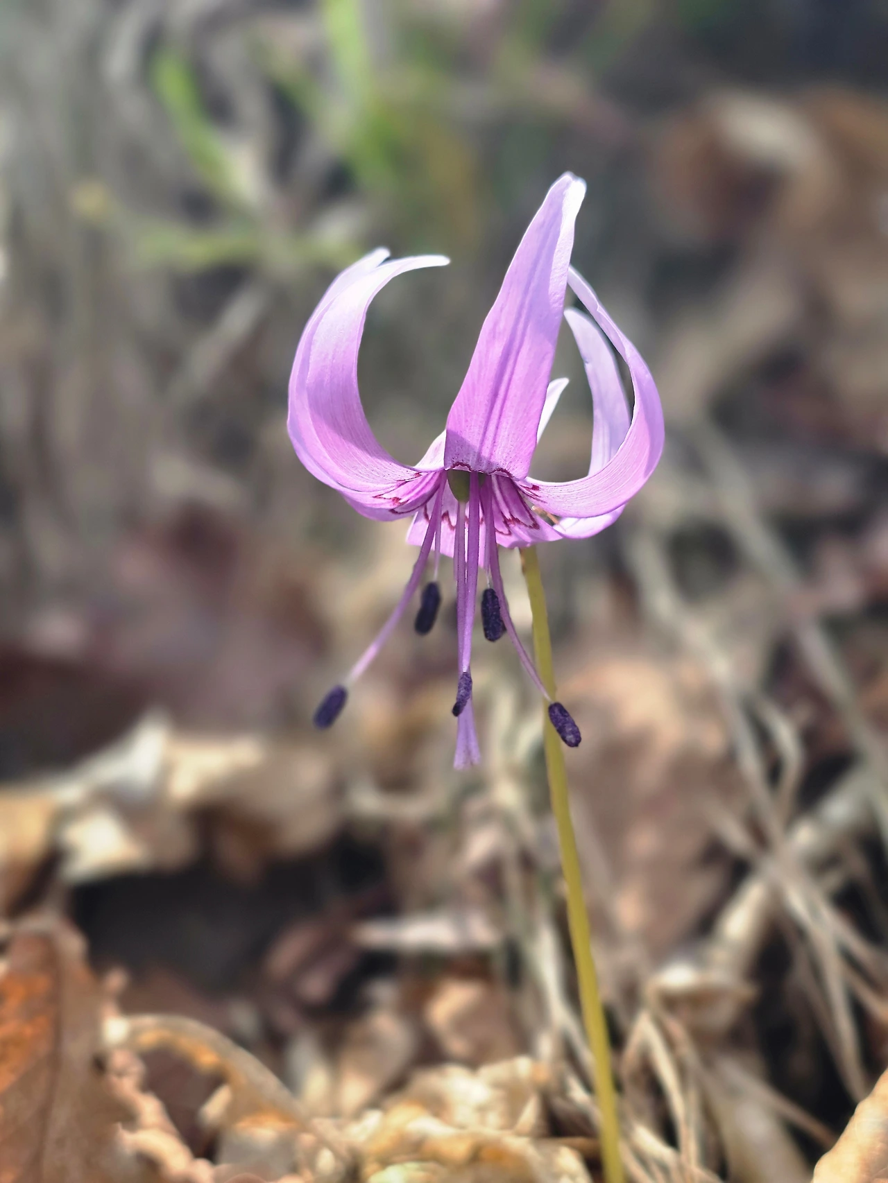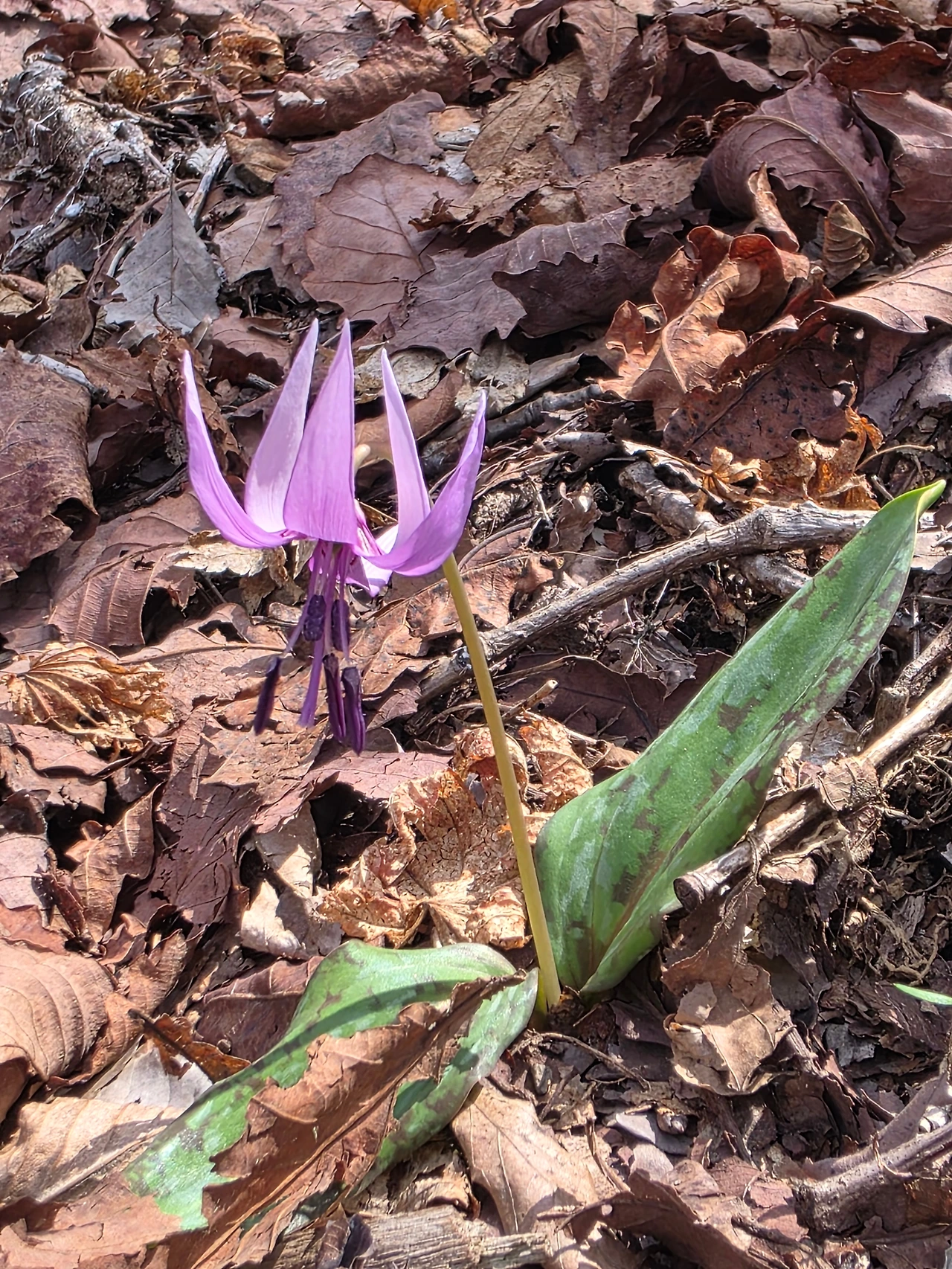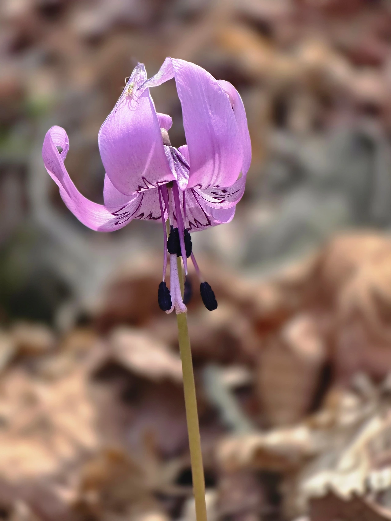 산을 좀 더 오르면 진객인 얼레지의 모습이 보인다. 성장한 성숙한 여인의 자태로 아주 고혹적이다. 나리꽃을 닮았지만 훨씬 화려하다. 이곳저곳 피어있는 모습이 다 매력적이어서 눈을 뗄 수가 없다.