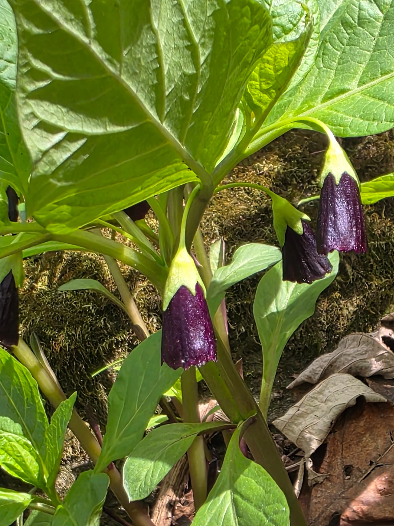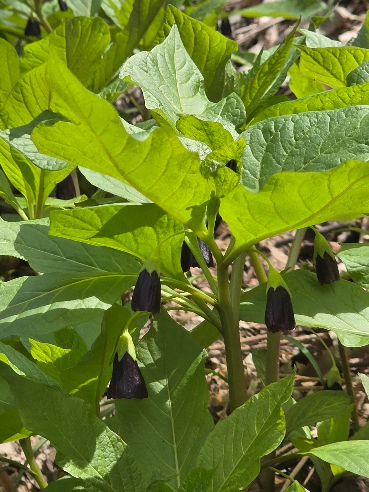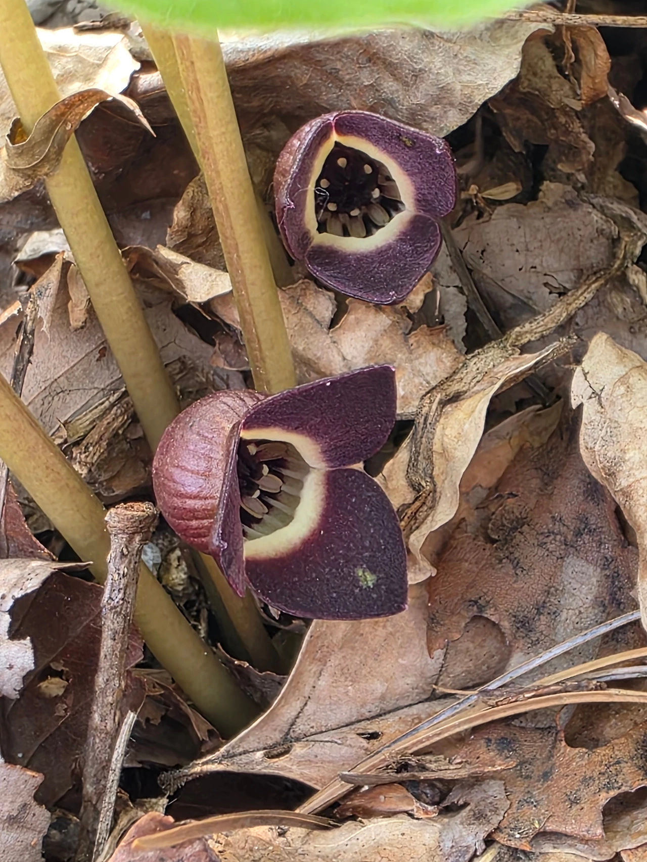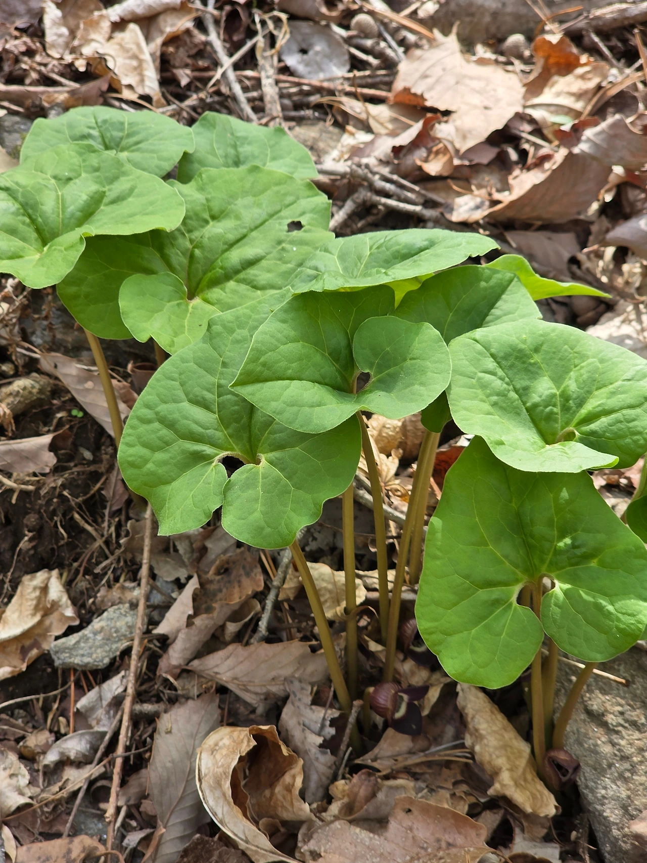 또 다른 독초인 족두리풀도 있다. 잎자루 밑에 꼭꼭 숨어 꽃이 피어서 자세히 찾아보지 않으면 보기 어렵다. 독초들은 꽃빛깔도 닮는 것 같다. 미치광이 풀과 꽃 색깔이 비슷하다.