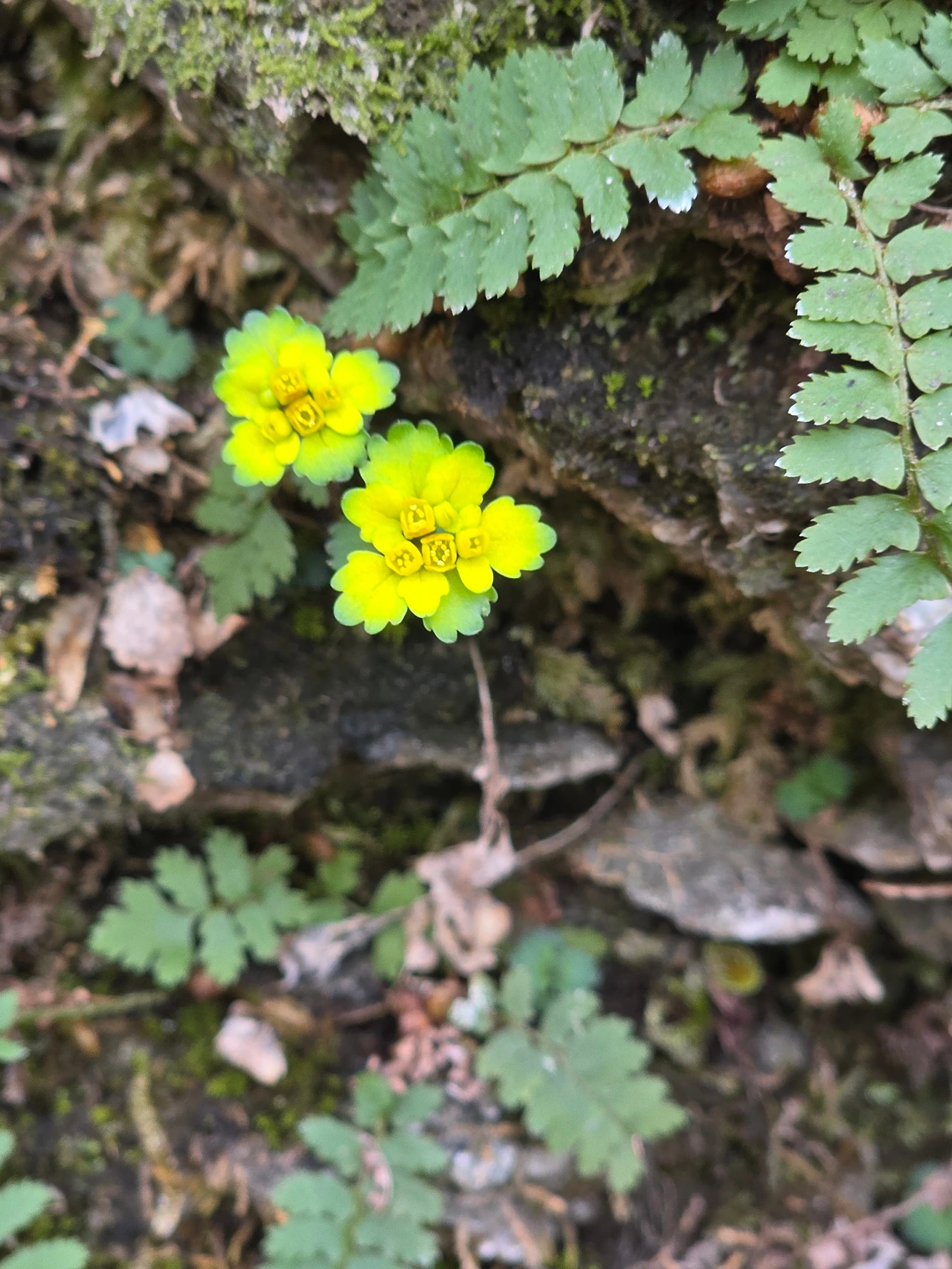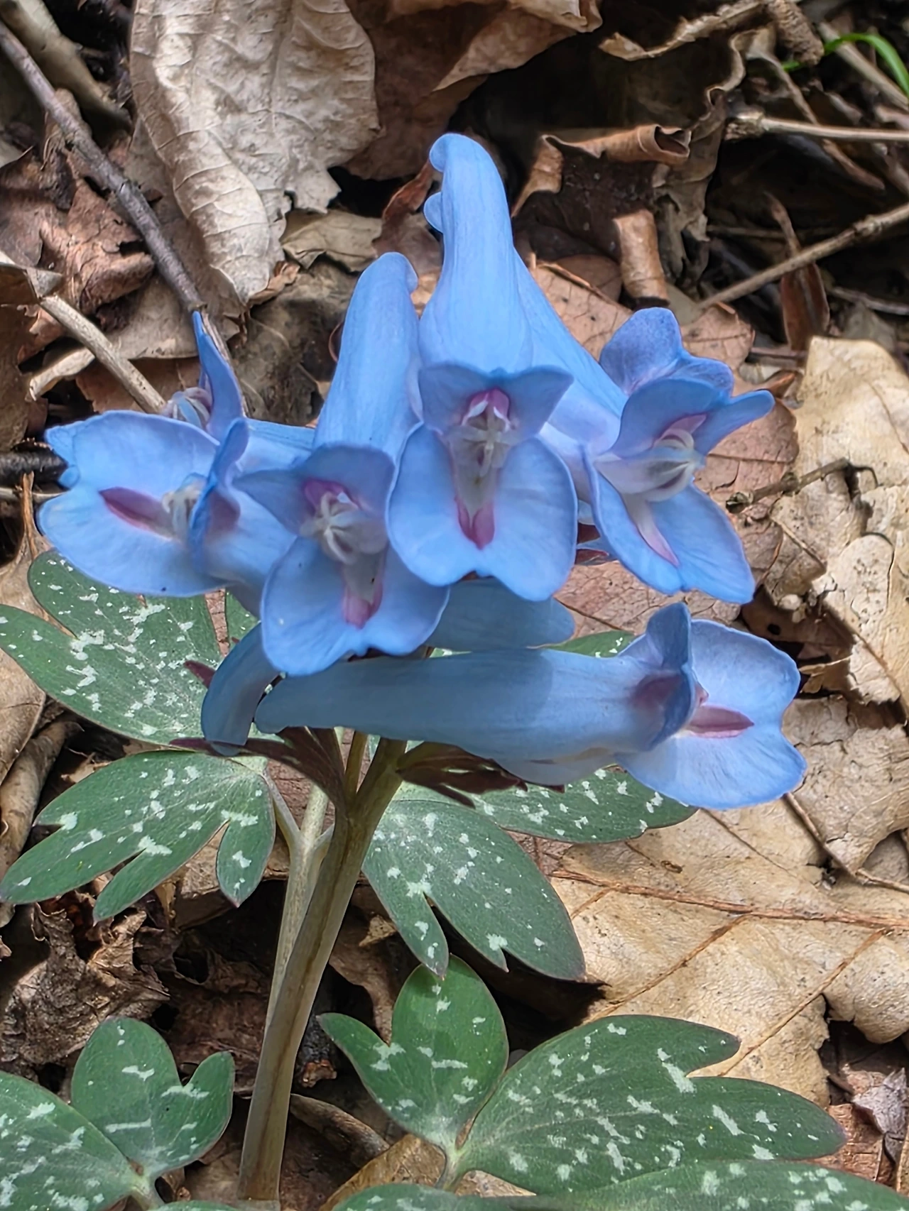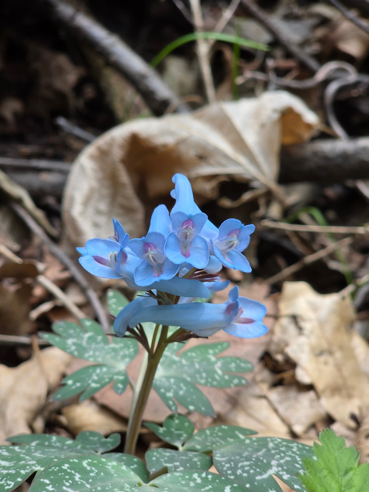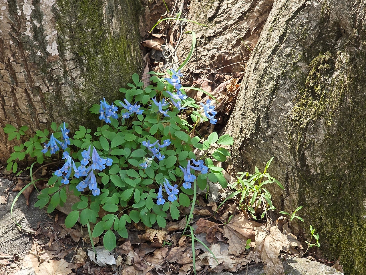 다른 산에서도 흔히 볼 수 있는 산괴불주머니와 제비꽃도 많았다. 제비꽃은 다양한 종류가 있었다. 그중 노랑제비꽃은 지천이었다. 잎이 알록달록한 알록제비꽃과 흔한 오랑캐꽃도 많았다.