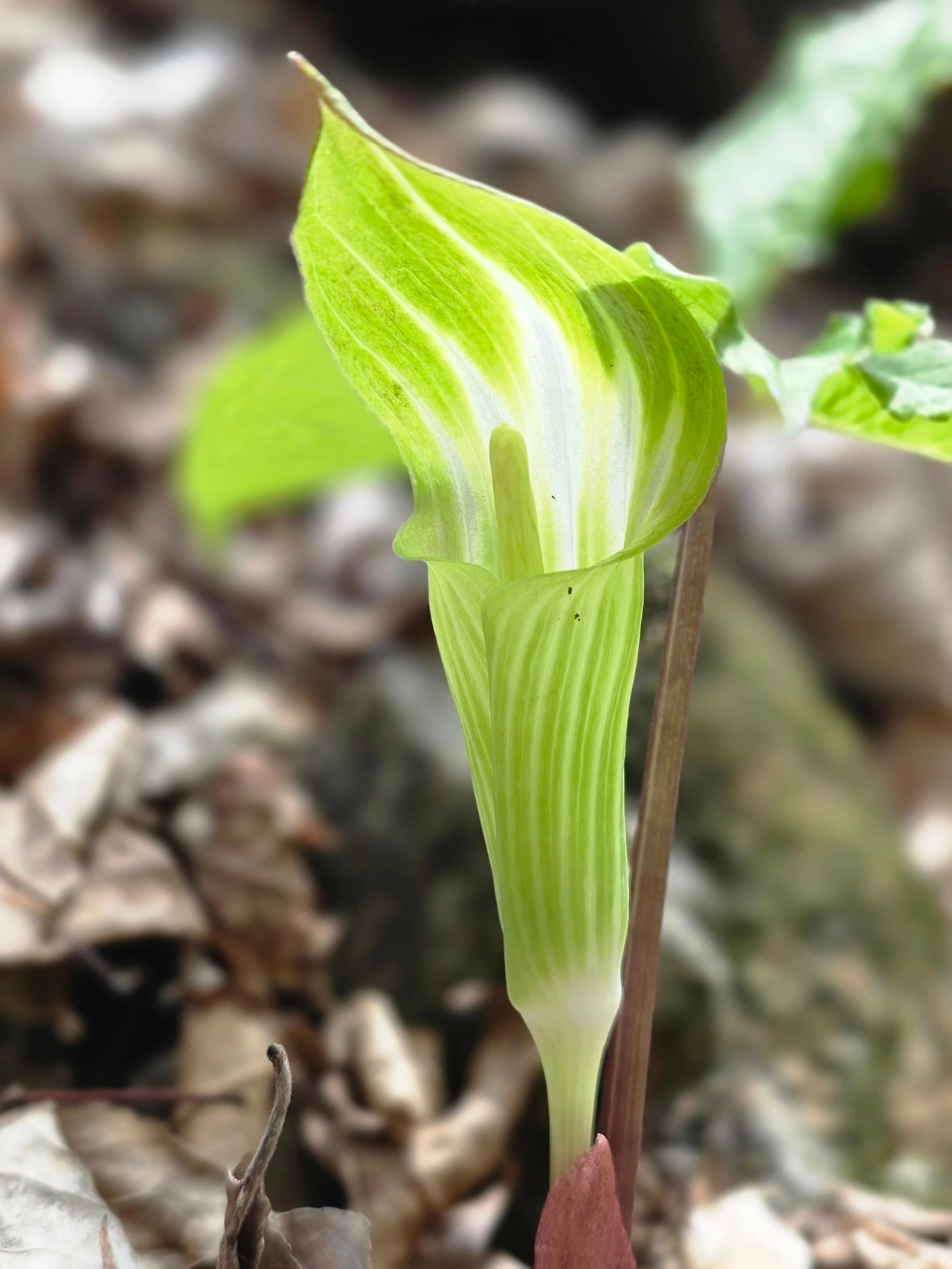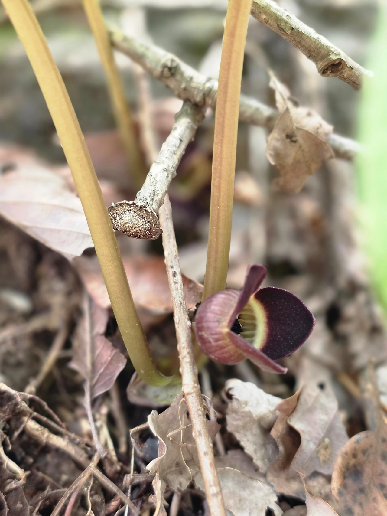 산기슭에는 무성하게 자란 식물들이 많이 보이는데 대부분 미치광이 풀이었다. 나물처럼 보여 먹게 되면 환각 작용과 구토를 불러오는 독초로 꽃 빛깔도 섬찟하다. 사약의 재료인 천남성도 꽃대를 올렸다. 특이한 꽃모양이 눈길을 끈다.