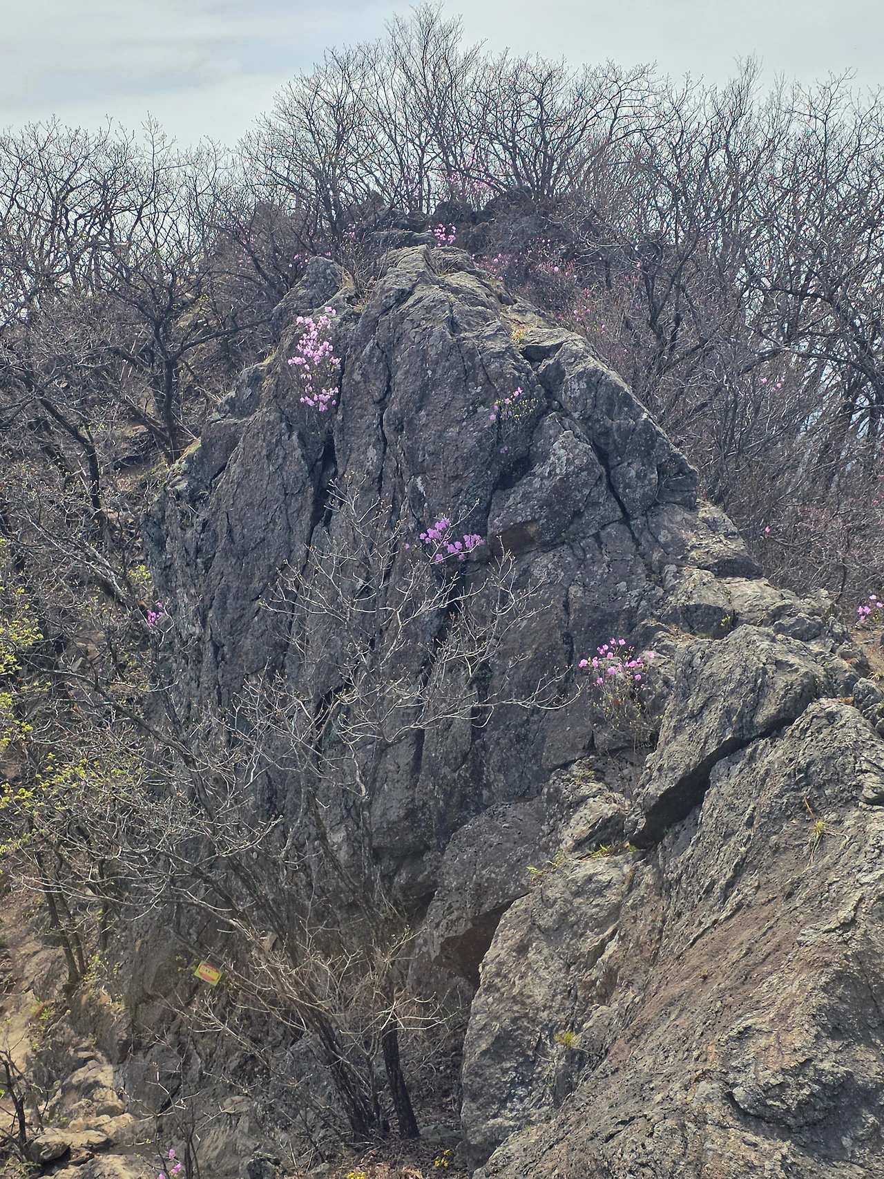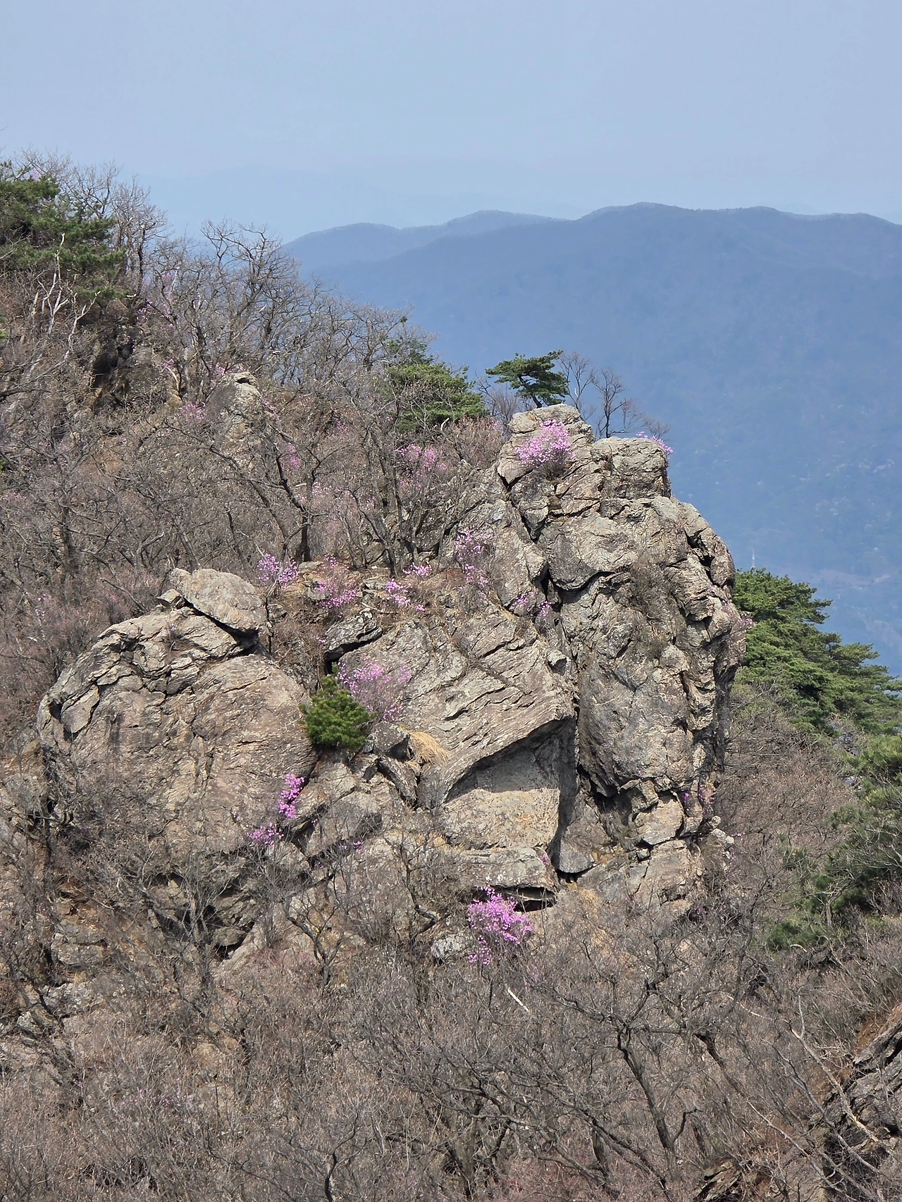 주변 봉우리에도 진달래가 한창이다. 기암과 함께 멋진 풍광이 펼쳐졌다.