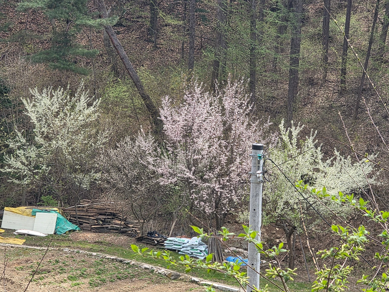 복사꽃과 자두꽃도 피어나 산자락은 온통 꽃으로 가득하다. 봄바람도 분다. 사월의 바람은 귀한 바람이다. 온갖 꽃향기를 담고 어린잎들의 숨결도 담고 있다. 오늘 산행은 봄날의 중심에 서서 봄을 만끽하는 날이다.