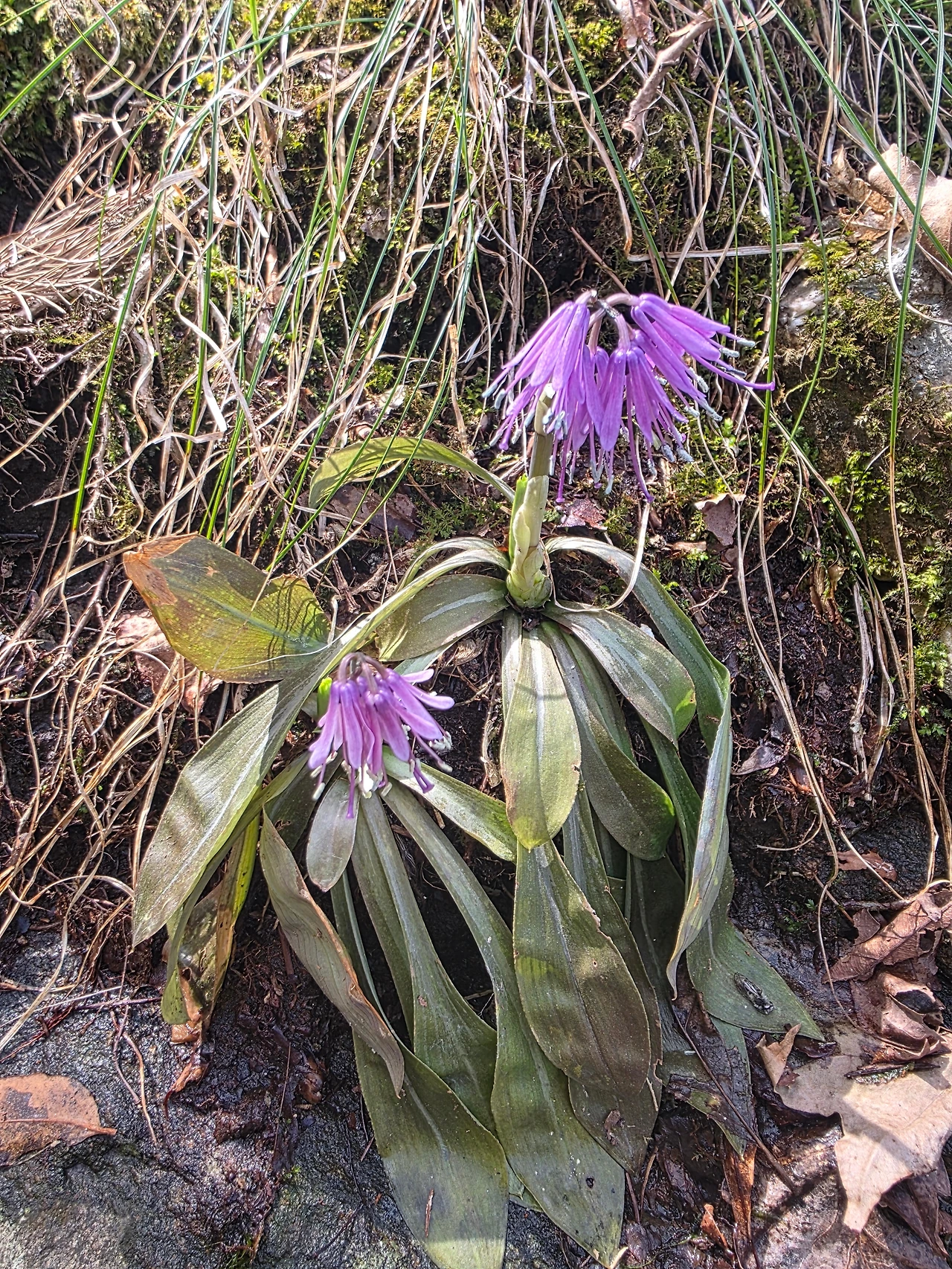산꼭대기에는 처녀치마가 자란다. 늘어진 잎이 마치 치마 같다. 수줍고 고고해서 높은 곳에만 자라는 걸까. 순진하면서도 미모는 감출 수 없다. 꽃을 자세히 보면 한 송이가 아니라 여러 송이다. 연달아 귀한 야생화를 만나 보니 즐거움이 넘친다.