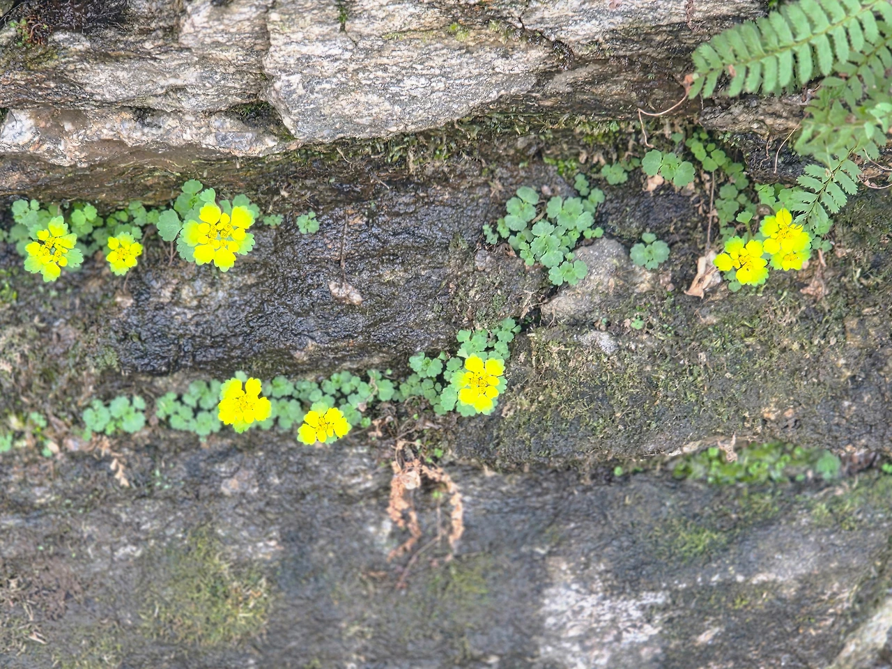 천마산 정상 아래에는 돌핀샘이 있다. 시원한 약수가 갈증을 단번에 날린다. 샘물 주변에는 괭이밥이 자란다. 노란 물감을 칠한 듯 그러데이션이 경이롭다.