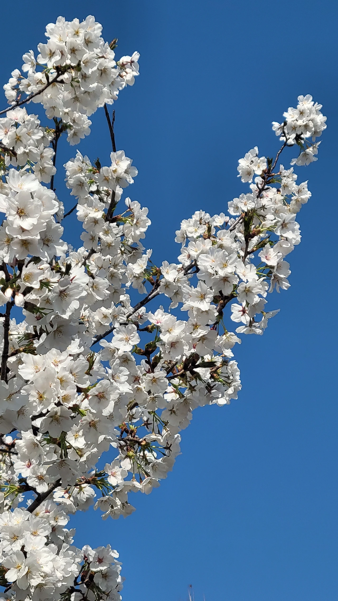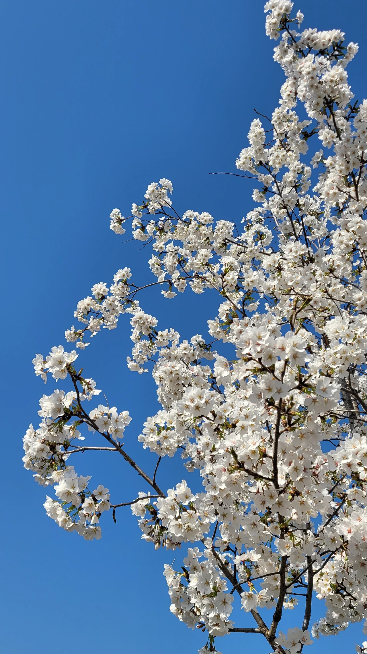 그런데 꽃송이를 자세히 들여다보면 완전한 흰꽃이 아니다. 다섯 장의 흰꽃잎이 방사형으로 붙어있고 노란 꽃밥이 달린 암술과 수술 아래 씨방 부분은 노랗다. 꽃받침은 초록색이고 꽃자루는 붉은빛을 머금은 연한 갈빛이다. 꽃망울이 벙글기 전에는 전체적으로 붉은 빛을 띤다. 꽃 종류에 따라 전체적으로 분홍빛이 나는 벚꽃도 있기는 하지만 대체적으로 멀리서 보면 온통 순백색으로 넘쳐난다. 일부가 다른 색을 지니고 있어도 대부분이 흰색이라 전체적으로 희게 보이는 것이다.