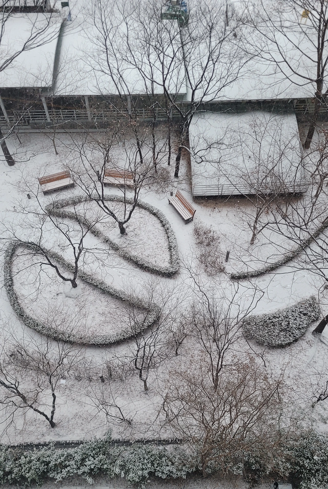 눈 오는 날에도 따스한 실내에서 하늘을 뒤덮으며 흩날리는 눈송이들을 베란다에서 바라보는 것도 참 좋다. 바람이 없을 때는 하얀 나비가 나풀대듯 우아하게 날린다. 하지만 바람이 불면 아이들이 숨바꼭질하듯 냅다 달리며 사라져 버린다. 그러다 눈이 쌓이면 세상이 온통 설국이 되어 신비한 동화 속 세상을 보게 된다.